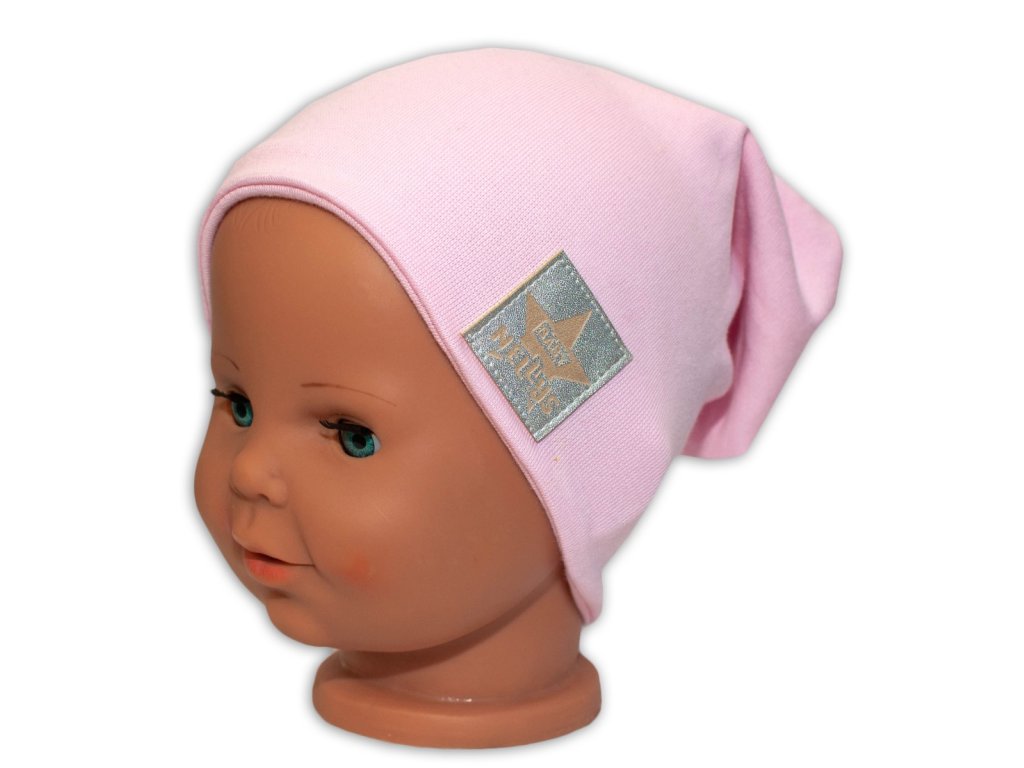 Dětská bavlněná čepice - dvouvrstvá, sv. růžová
