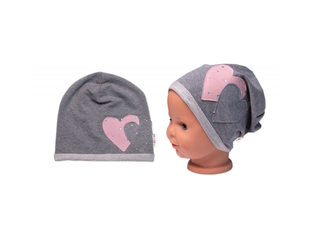 Dětská čepice bavlna, Srdíčka s kamínky, Baby Nellys, šedá