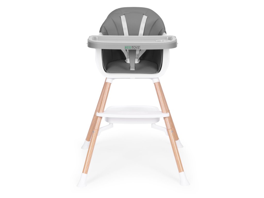 Dětská jídelní židlička ECOTOYS 2v1 – vysoká židle i sedátko na židli. Praktická a stabilní židlička pro děti od 6 do 36 měsíců. Kovové nohy, odolný potah z snadno udržovatelné ekokůže a dvouvrstvý odnímatelný tác s možností mytí v myčce zajistí pohodlné a hygienické stolování. Pětibodové bezpečnostní pásy, protiskluzové koncovky a středová zarážka proti sesunutí se postarají o bezpečí během každého jídla. Hlavní přednosti. Pro děti od 6 do 36 měsíců. 2v1: vysoká židlička i sedátko upevněné na klasickou židli. Stabilní konstrukce a kovové nohy. Potah z odolné ekokůže pro snadnou údržbu. Odnímatelný dvouvrstvý tác s možností mytí v myčce. 5bodové bezpečnostní pásy. Středová zarážka chránící dítě před sesunutím. Funkční polička pod sedákem na potřeby ke krmení. Protiskluzové koncovky nohou. Opěrka nohou pro pohodlné sezení. Maximální zatížení 20 kg. Značka: ECOTOYS. Ke stolu s celou rodinou. Židlička je ideální volba pro rodiče i děti od 6 měsíců. Umožní jíst společně u jednoho stolu, dítě sleduje a napodobuje správné návyky a rychle si oblíbí svůj nový pohodlný nábytek. Široký tác poskytne prostor na jídlo i zábavu, takže může skládat kostky nebo kreslit. Dobře promyšlené detaily. Bezpečnostní pásy ve 5 bodech spolehlivě stabilizují dítě a nastavitelná délka se přizpůsobí jeho růstu. Sedák je tvarovaný pro pohodlné a správné sezení. Regulovatelný tác nabízí 3 stupně nastavení vzdálenosti. Jednoduše jej zacvaknete do požadované polohy a po jídle sejmete a umyjete v myčce. Dvě vrstvy mají jasný účel. Vrchní část s místem na hrnek a zvýšeným okrajem je na jídlo, spodní rovná plocha je ideální na hraní a tvoření. Přemýšlivá konstrukce pro každý den. Polička na příslušenství pod sedákem pojme bryndáčky, ubrousky i drobnosti. Zároveň zvyšuje celkovou tuhost konstrukce. Protiskluzové koncovky chrání podlahu před poškrábáním a brání nežádoucímu posunu i na hladkých či vlhkých površích. Dvě možnosti používání. Židličku lze snadno připevnit na standardní jídelní židli a dopřát dítěti vlastní bezpečné místo u stolu. Po demontáži nohou sedátko upevníte popruhy k téměř libovolné domácí židli. Toto řešení je skvělé na cesty i prázdniny. Specifikace. Věková skupina: od 6 do 36 měsíců. Hmotnost: 4,6 kg. Rozměr balení: 43 × 43 × 32 cm. Maximální zatížení: do 20 kg. Tác: snadná demontáž, dvouvrstvý, možnost mytí v myčce. Bezpečnostní pásy: pětibodové. Nohy: s protiskluzovými koncovkami. Potah: snadno snímatelný, možnost praní. Značka: ECOTOYS. Bezpečnost a důležité informace. Výrobek používejte vždy pod dohledem dospělé osoby. Dítě vždy připoutejte pětibodovým pásem a zkontrolujte správné upevnění všech částí před každým použitím. Umístěte na rovný a stabilní povrch. Nepřekračujte maximální zatížení 20 kg. Židlička není hračka. Před prvním použitím očistěte povrchy podle pokynů k údržbě. Potah udržujte a perte dle doporučení výrobce. Fotografie mají ilustrační charakter. Odstíny barev se mohou lišit v závislosti na nastavení monitoru.Doplňkové parametry