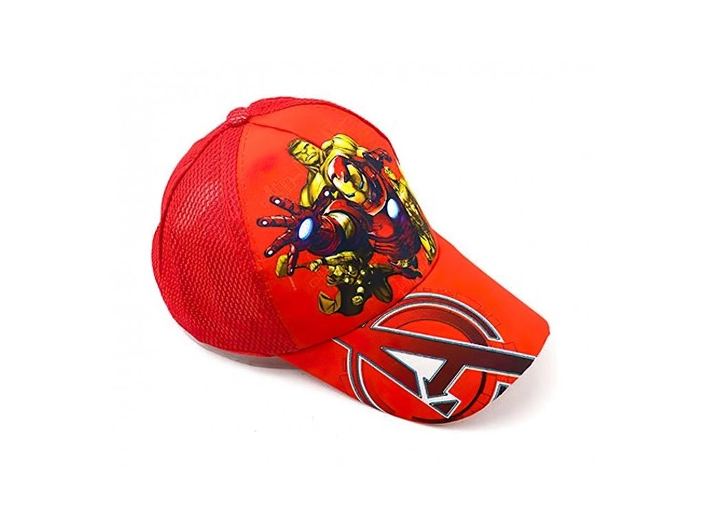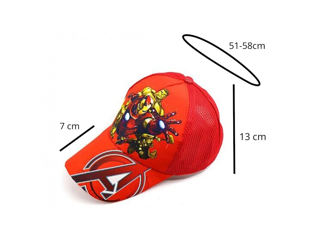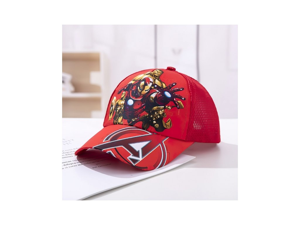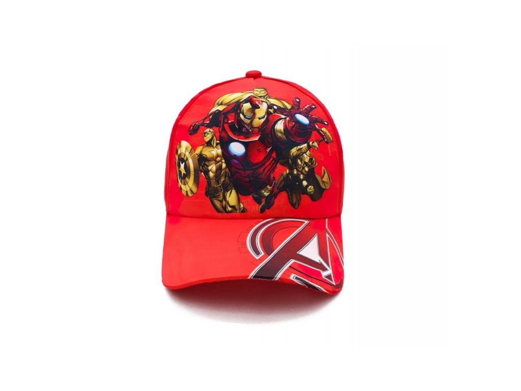 Dominantní červená barva je doplněna výrazným potiskem ikonických postav, jako jsou Iron Man a Captain America, kteří společně míří do akce. Na kšiltu nechybí ani výrazné logo Avengers, které dodává celkovému designu energii a styl.