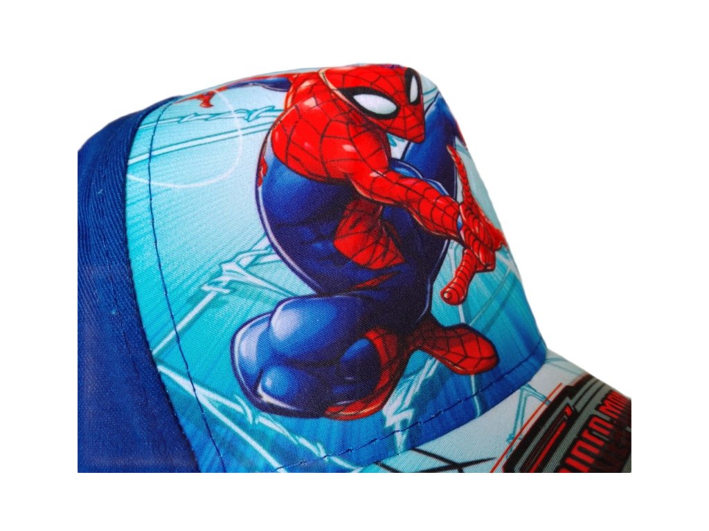 Na čelní části čepice a kšiltu dominuje barevný akční potisk Spidermana ve skoku, připraveného vystřelit pavučinu. Modré a červené tóny jsou laděny do komiksového stylu a přitahují pozornost svým dynamickým zpracováním.