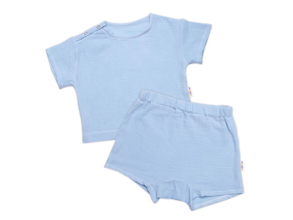 Dětská letní mušelínová 2D sada tričko kr. rukáv + kraťasy, modré