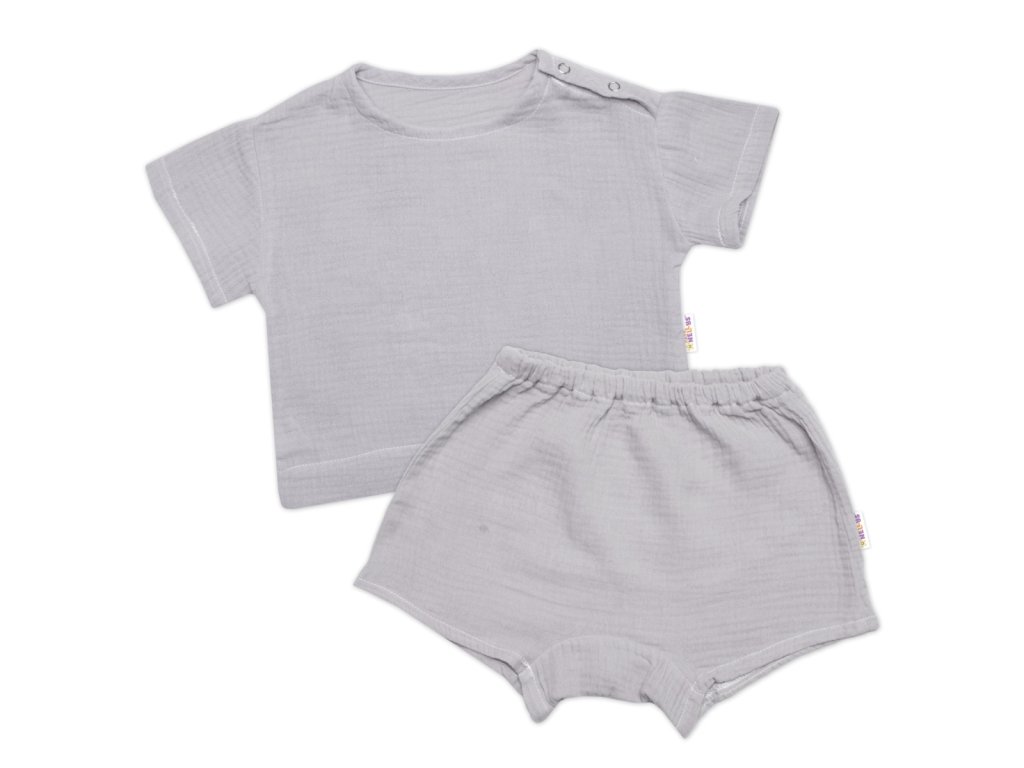 Dětská letní mušelínová 2D sada tričko kr. rukáv + kraťasy, šedé