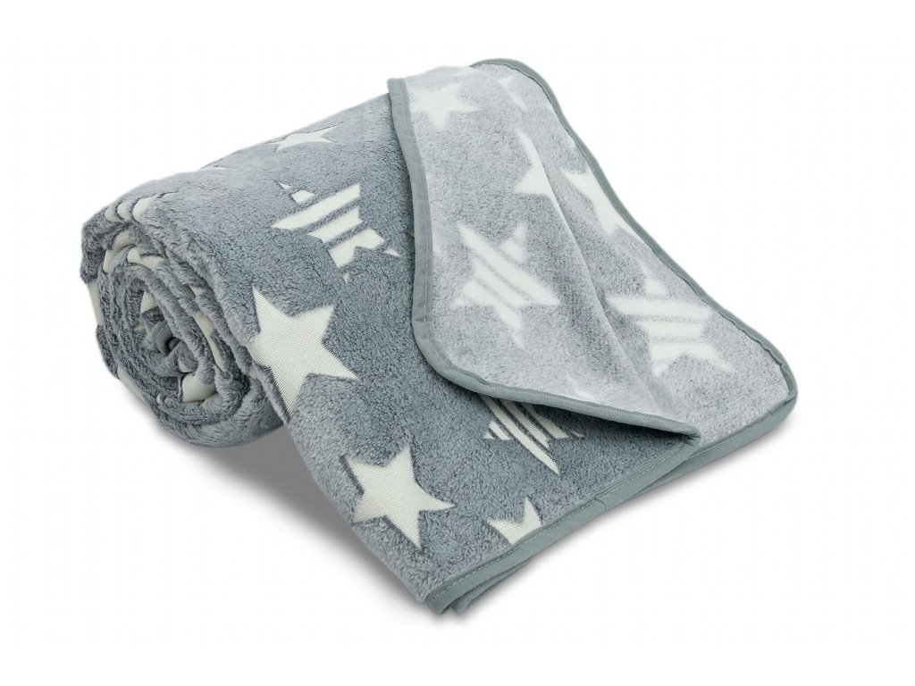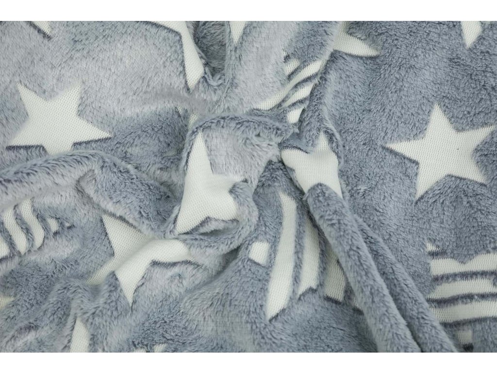 Dětská mikroplyšová svítící deka Hvězdy šedé 100x150 cm
