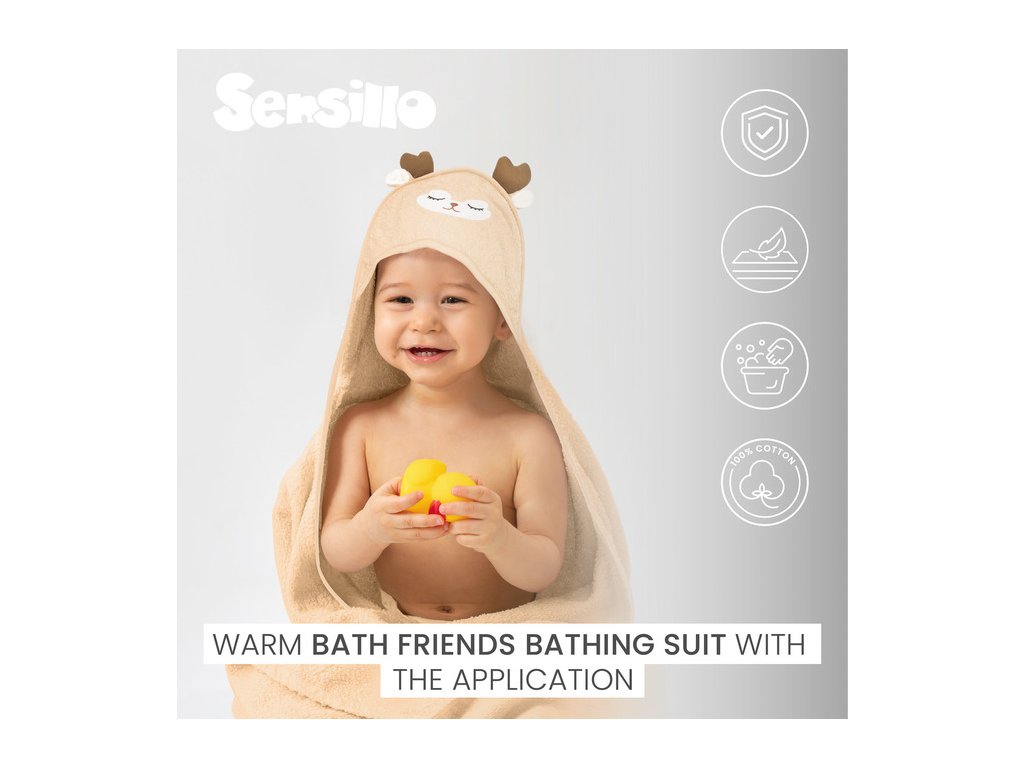 Teplo a komfort po každé koupeli. Dětská osuška Bath Friends je jedinečný produkt, který poskytuje maximální pohodlí a bezpečnost během každé koupele. Díky roztomilým aplikacím ve tvaru zvířátek se stává koupání zábavnějším a příjemnějším zážitkem pro vaše nejmenší. Bezpečný a jemný materiál. Osuška Bath Friends je vyrobena z vysoce bezpečných materiálů, které jsou šetrné k citlivé dětské pokožce. Precizní zpracování a jemné švy minimalizují riziko podráždění a odřenin, což zaručuje maximální komfort pro vaše dítě. Atraktivní design. Osuška je vybavena praktickým kapucí, která chrání hlavičku dítěte před chladem a usnadňuje rychlé vysušení vlasů. Design doplněný aplikacemi ve tvaru roztomilých zvířátek upoutá pozornost dítěte a přináší radost do každodenní péče o něj. Funkčnost a pohodlí. Vysoce kvalitní froté bavlna, ze které je osuška vyrobena, je mimořádně savá, jemná na dotek a velmi příjemná k pokožce. Osuška je ideální nejen pro každodenní koupání doma, ale také ji oceníte při návštěvě pláže nebo bazénu. Produkty Bath Friends jsou ideální volbou pro rodiče, kteří hledají bezpečné, funkční a zábavné řešení pro péči o své nejmenší. Vyzkoušejte tuto osušku, která kombinuje atraktivní design, jemnost a praktičnost, a proměňte každou koupel v radostný rituál! Výrobce: IKS 2 Mucha Sp. J.,Rybnicka 9, 43-190 Mikołow. Upozornění: Nenechávejte dítě samo bez dozoru. Obal není hračka, odstraňte ho z dosahu dítěte.Doplňkové parametry