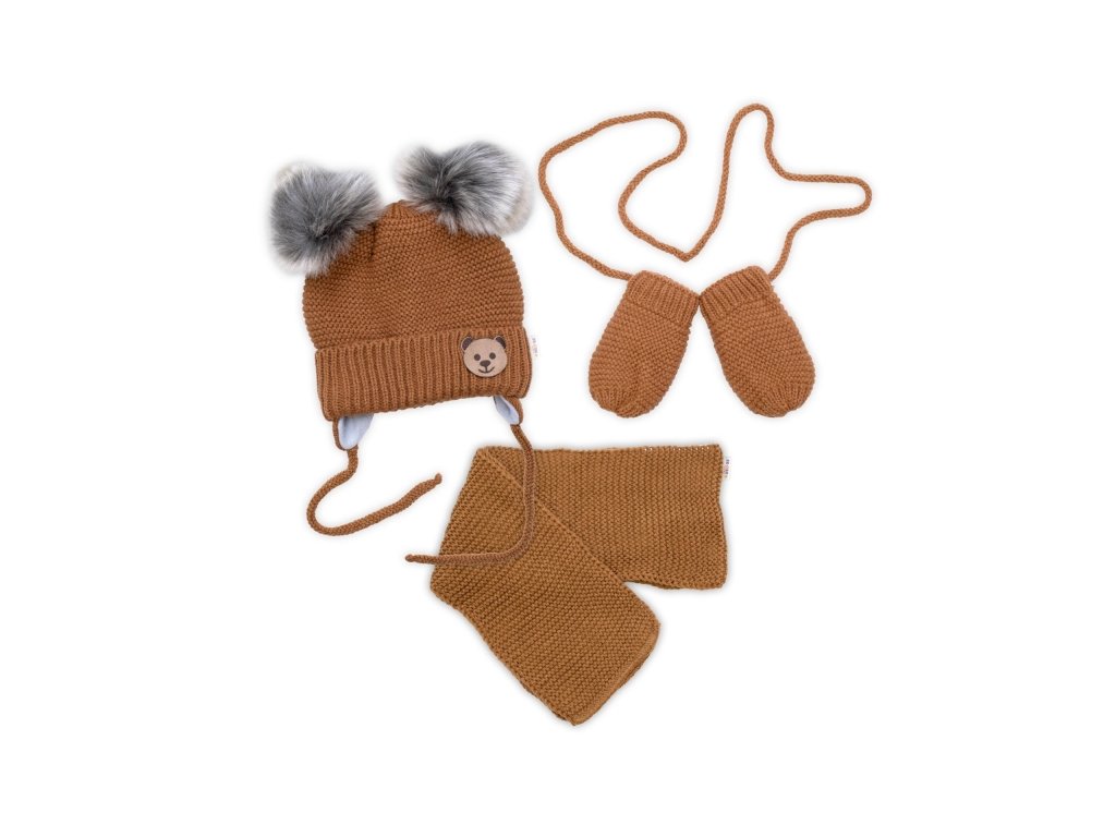 Dětská sada, zimní čepice s šálou + rukavičky 3D, Teddy Bear - hnědá
