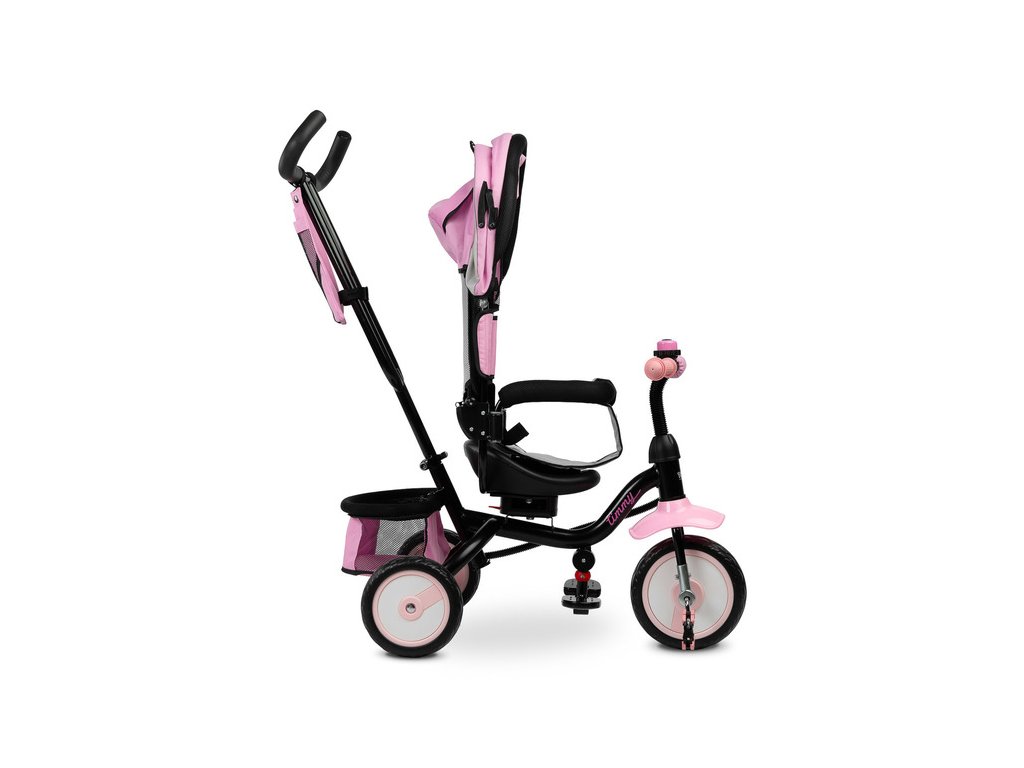Dětská tříkolka Timmy 3v1 s vodicí tyčí, rostoucí - růžová