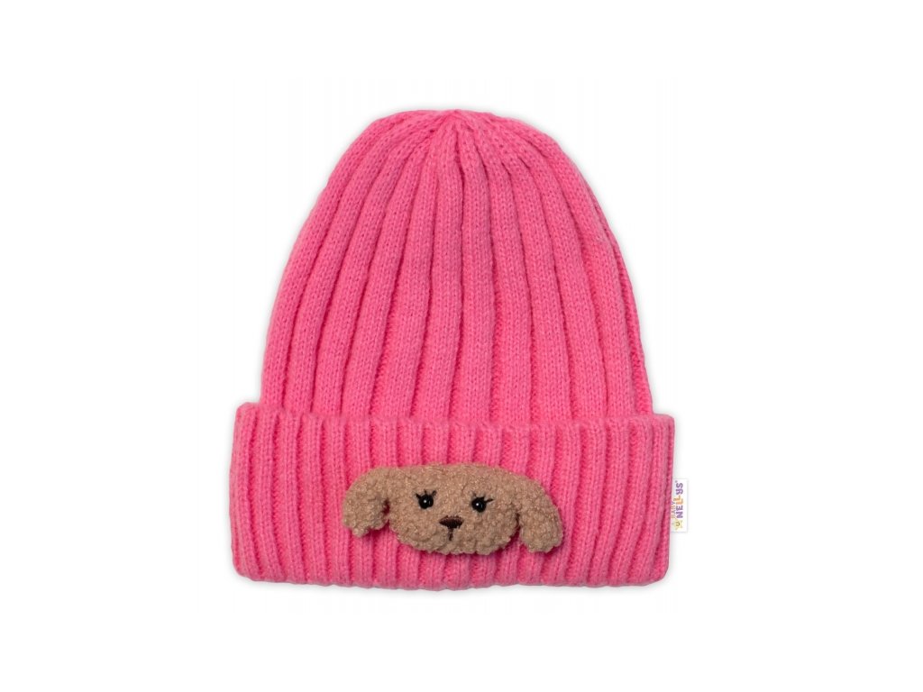 Dětská zimní čepice Bear, Baby Nellys - růžová, vel. 48-54 cm