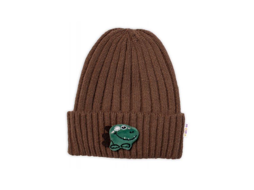 Dětská zimní čepice Dino, Baby Nellys - hnědá, vel. 48-54 cm