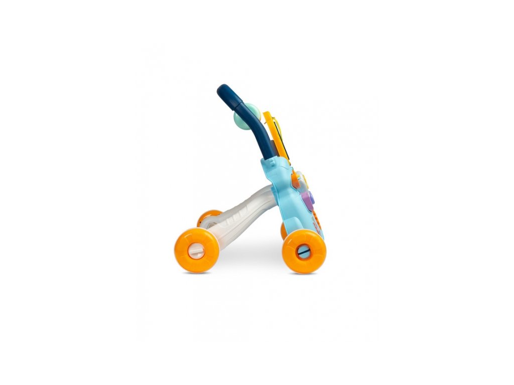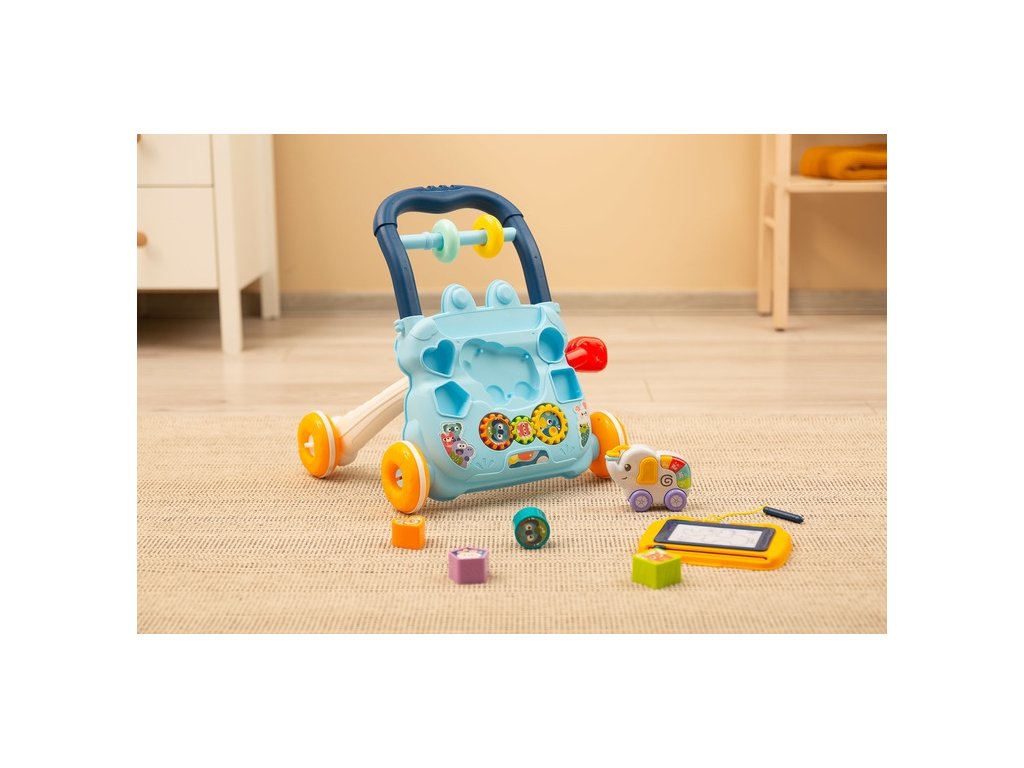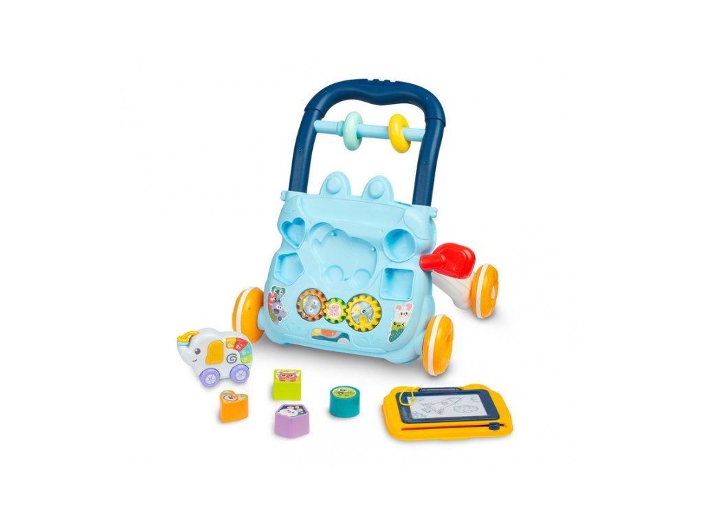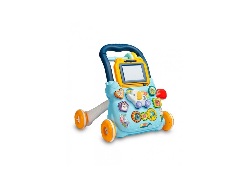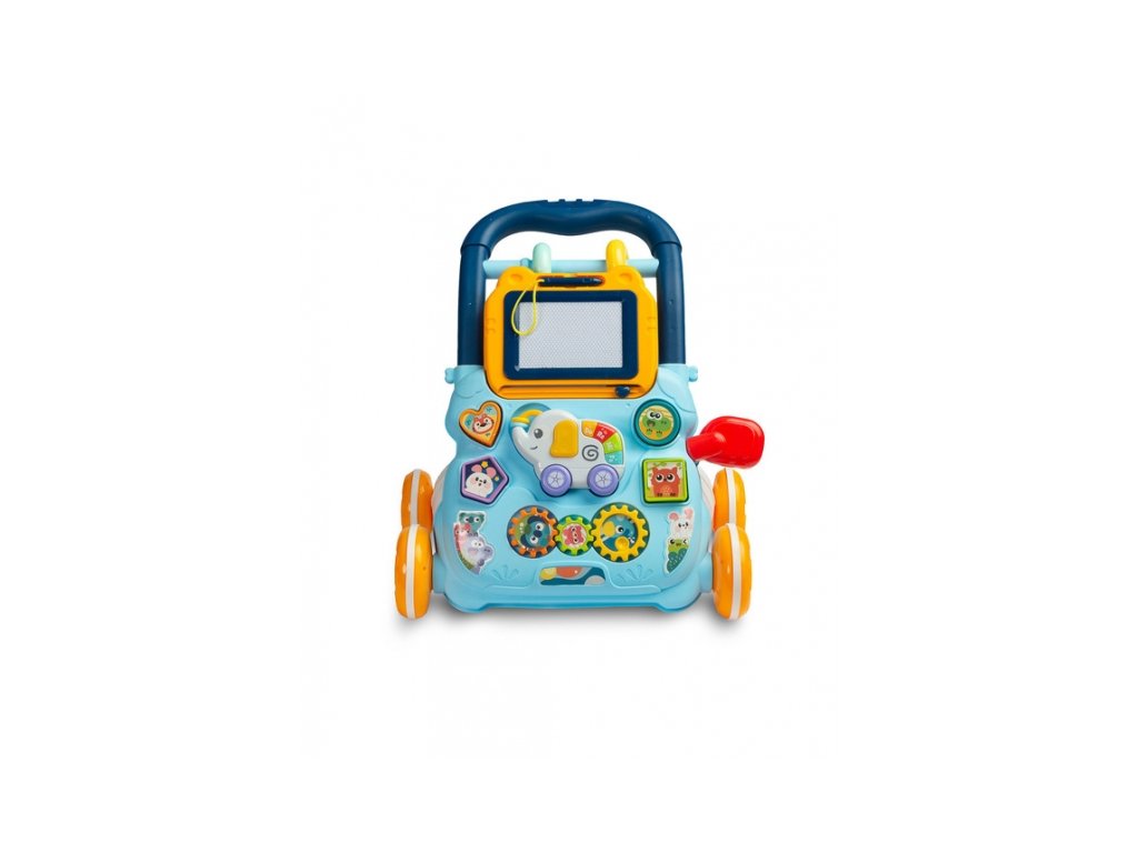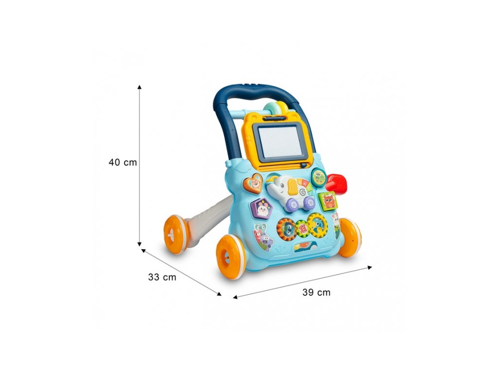 Dětské interaktivní chodítko, stoleček s příslušenstvím Sloník.Interaktivní a vzdělávací ZOO Pusher od Toyz je výbornou podporou při učení chůze a rozvoji dovedností dítěte. Stimuluje zvědavost vašeho dítěte a upoutá jeho pozornost pomocí barevných a poutavých hraček, které podněcují jeho zvědavost. Kromě mnoha motorických hraček je odstrkovadlo vybaveno odnímatelným kreslícím prknem a hudebním slonem napájeným bateriemi. Posunovač umožňuje nastavit odpor koleček.