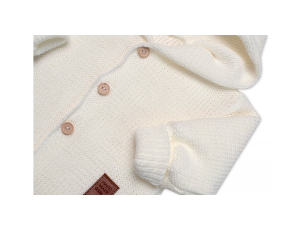 Dětský elegantní pletený svetřík s knoflíčky a kapucí s oušky Baby Nellys, ecru
