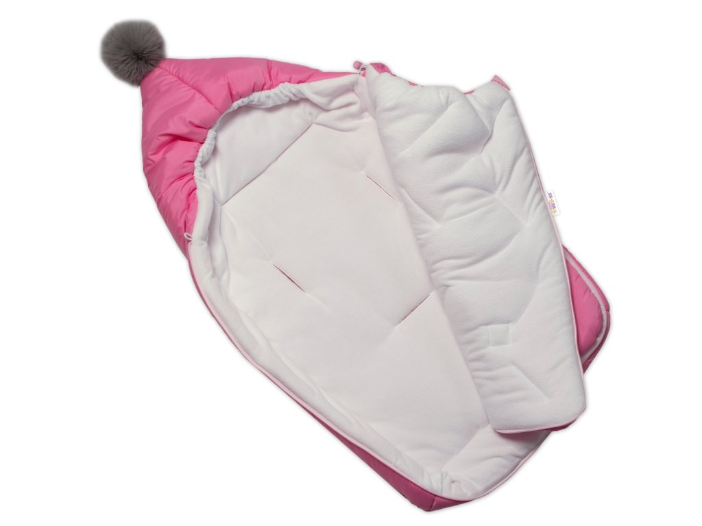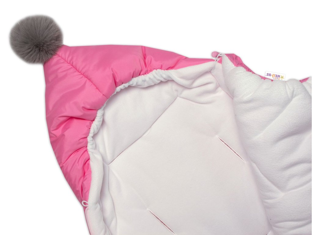 Dětský fusak Baby Nellys s kapucí a kožešinovou bambulí, růžový, cukříkový