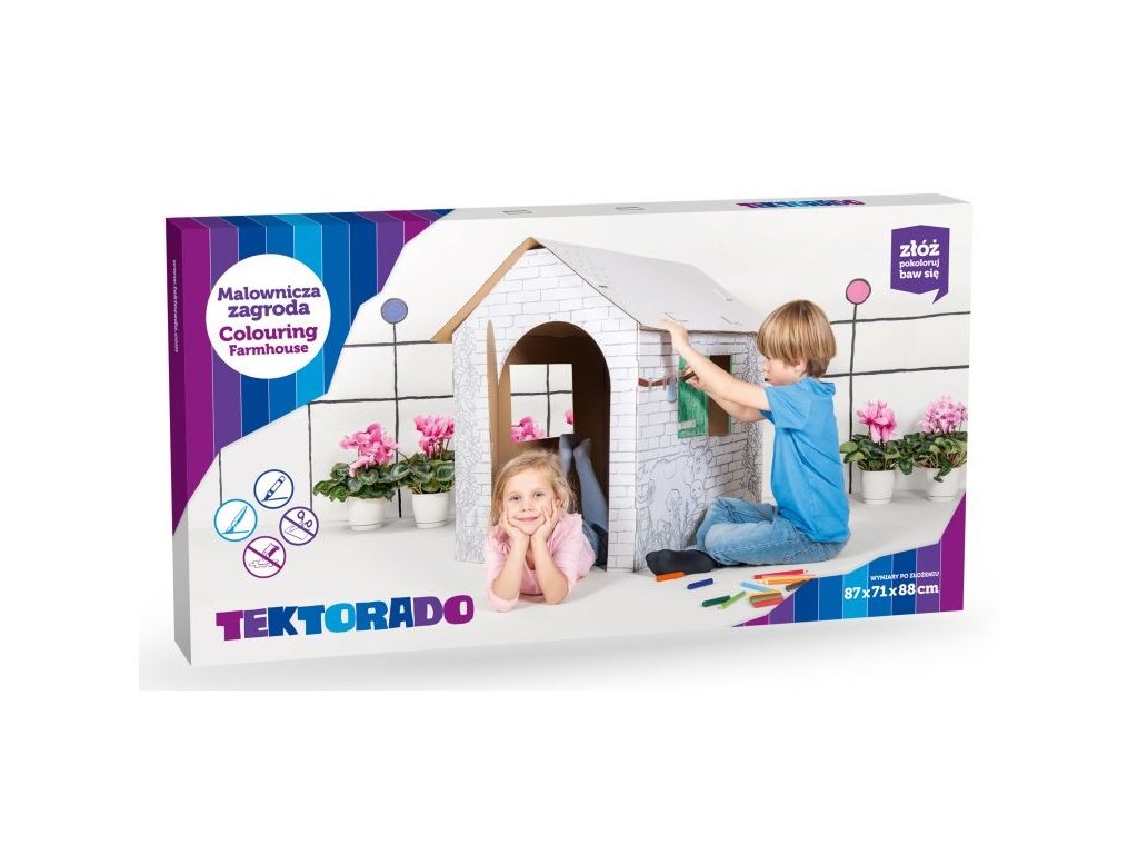 Skvělý dárek pod stromeček nebo k narozeninám pro všechny děti. Domek má na sobě vzory, které lze vybarvit podle libosti. Bílé provedení doslova láká k vlastní tvorbě, kresbám a náčrtům. Domeček je vyrobený z 5-vrstev bílého vlnitého kartónu. Balení obsahuje: - bílý domeček k vybarvení. (neobsahuje pastelky) Rozměry domku:87 x 71 x 88 cm. 1. Jakost.Doplňkové parametry