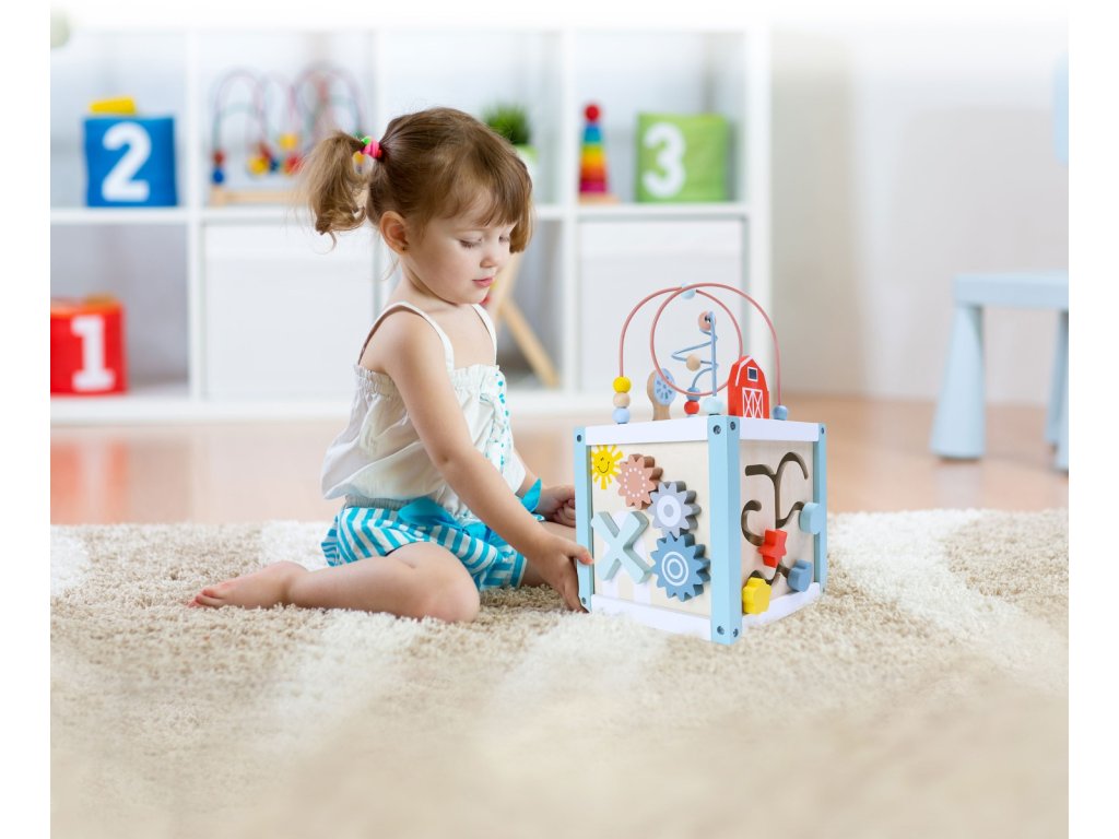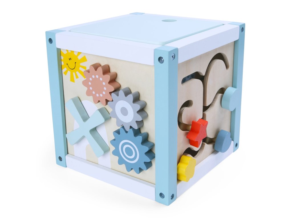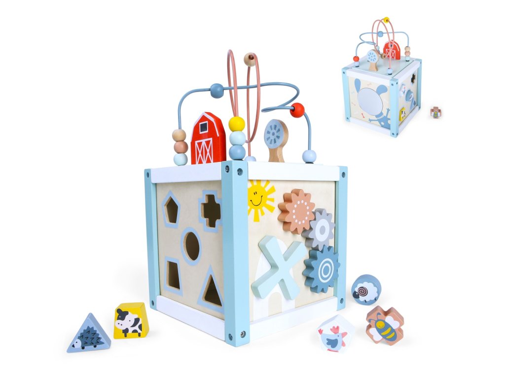 DŘEVĚNÁ EDUKAČNÍ HRAČKA. Objevte kvalitní dřevěnou motorickou kostku ECOTOYS, která spojuje učení a radost ze hry v jednom chytrém řešení. Skvělá hračka rozvíjející manuální dovednosti dítěte. Pro děti od 12 měsíců. Labyrint s pohyblivými kostičkami. Otočná ozubená kola. Zrcátko. Sortér tvarů a barevné kostičky. Otevírací víko kostky. Rozměr kostky 20x20x20 cm. Certifikáty: CE, EN71. Produkt značky: ECOTOYS. ZÁBAVA A ROZVOJ. Každý rodič si přeje, aby se jeho dítě vyvíjelo správně a vyváženě. Edukativní hračka značky ECOTOYS podporuje rozvoj na mnoha úrovních díky promyšlené konstrukci, kde má každá stěna kostky jinou funkci a charakter. Dítě si procvičí jemnou motoriku, koordinaci oko ruka a naučí se rozpoznávat barvy i tvary, přičemž si užije spoustu zábavy. MNOHO FUNKCÍ V JEDNÉ HRAČCE. Hračka je plná pohyblivých prvků, které motivují ke zkoumání a objevování. Dítě si při hře rozvíjí motoriku, trpělivost i logické myšlení a přirozeně si osvojuje barvy a tvary. V horní části se nachází snímatelné víko s labyrintem a barevnými korálky, zábava spočívá v jejich posouvání z jednoho konce na druhý. Na bočních stěnách se dítě může bavit sortérem a přiřazovat správné tvary kostiček. Další stěny kostky obsahují zrcátko, labyrint a otočná ozubená kola. BOX NA POKLADY. Díky otevíracímu víku můžete ukládat drobné hračky dovnitř kostky. Vše bude na jednom místě a vždy po ruce, kdykoli připravené ke hře. SPECIFIKACE. Určení: od 12 měsíců. Certifikáty: CE, EN71. Hmotnost: 2 kg. Rozměr balení: 21x21x21 cm. Výrobce: ECOTOYS. Upozornění: Obal není hračka, odstraňte ho z dosahu dítěte. Nenechávejte dítě bez dozoru. Před prvním použitím odstraňte veškeré obalové materiály. Hračku používejte dle pokynů výrobce a pravidelně kontrolujte její stav. V případě poškození hračku přestaňte používat.Doplňkové parametry