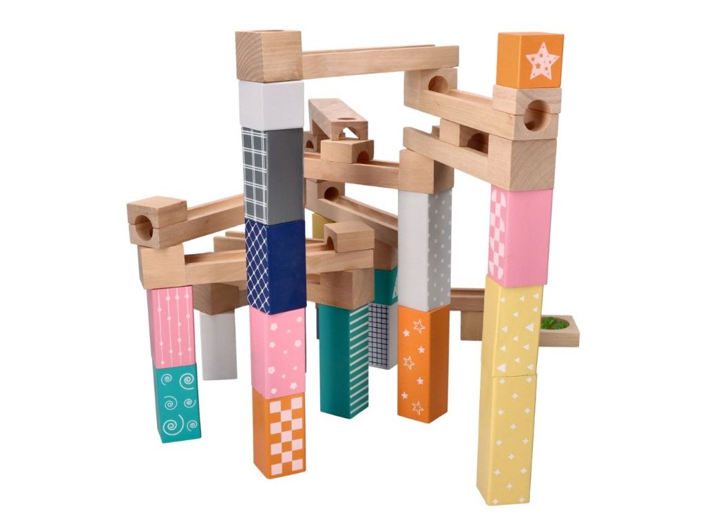 Dřevěná kuličková dráha, labyrint - 53 dílků