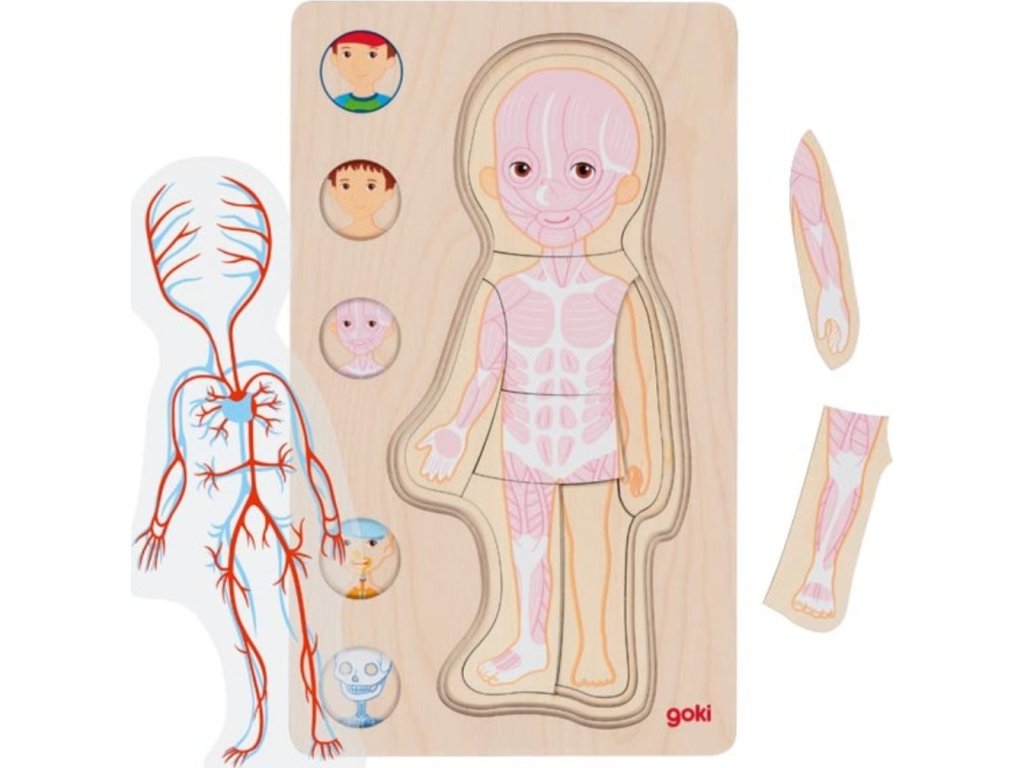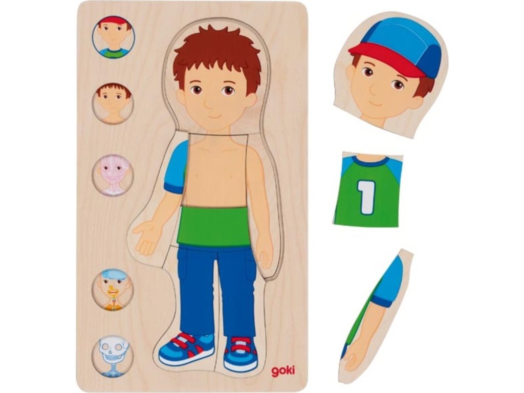 Dřevěné vícevrstvé puzzle/vkládačka Lidské tělo - Chlapec