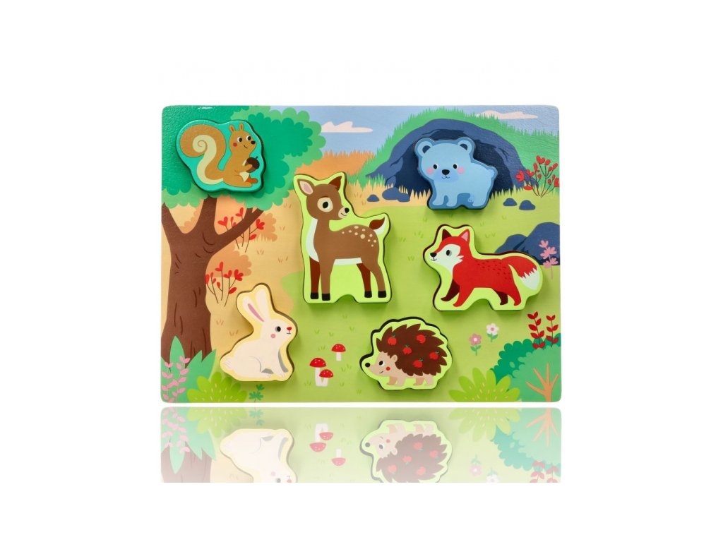 Dřevěné zábavné vkládací puzzle Adam Toys, lesní zvířátka 3D