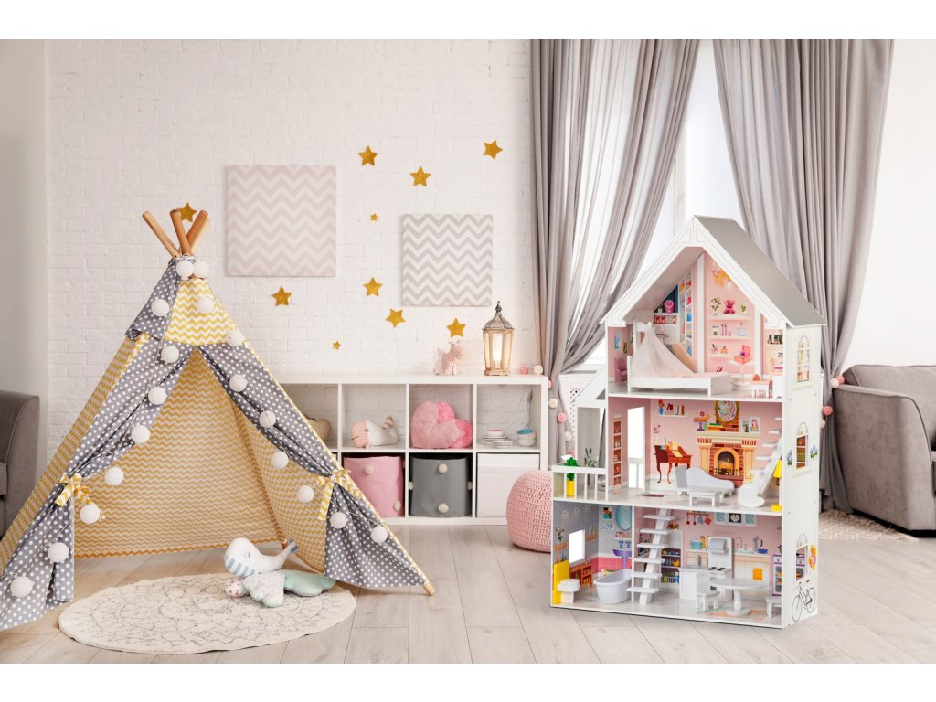 Dřevěný domeček pro panenky Pudrová rezidence, 3 patra, XXL