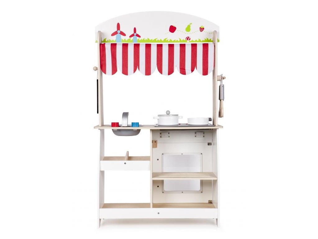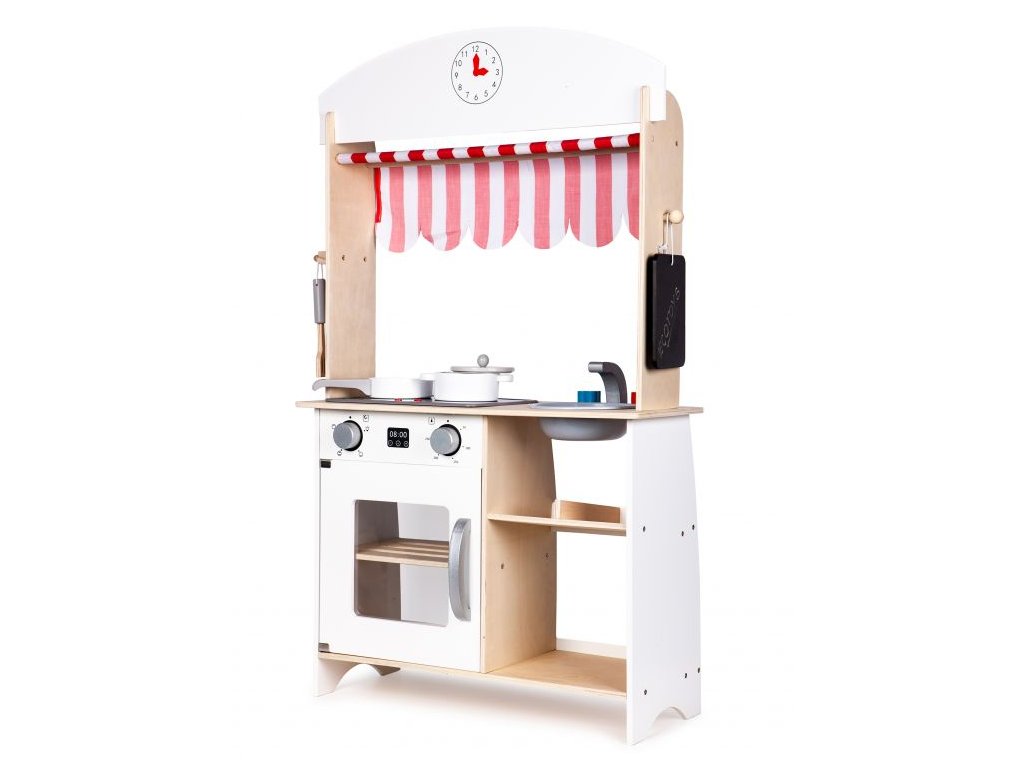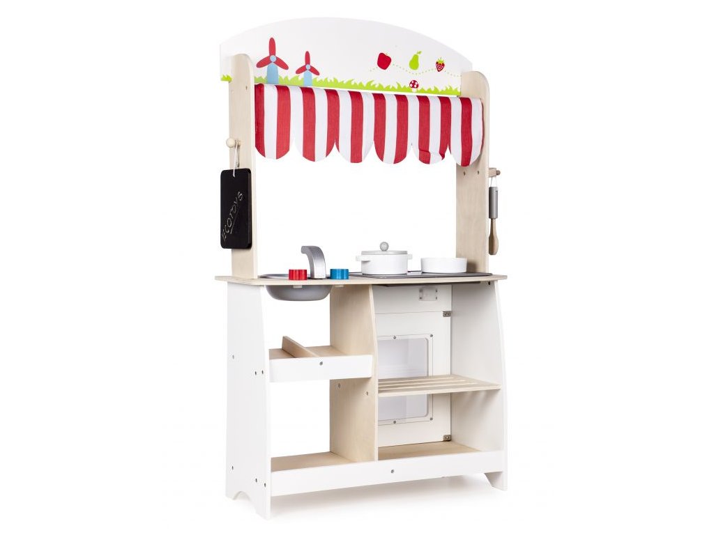 Eco Toys Dřevěná kuchyňka s příslušenstvím, 101 x 60 x 27 cm - bílá