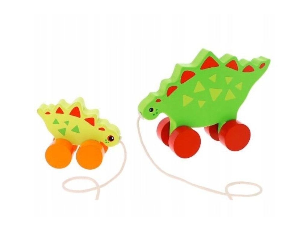 Edukační dřevěná hračka tahací - 2 dinosauři. Dítě se učí rozpoznávat tvary a barvy. Hračka je vhodná pro děti, které už chodí, anebo zlepšují svou techniku chůze. Vhodné pro děti od 12m +. Rozměry:24,2x13x6cmDoplňkové parametry