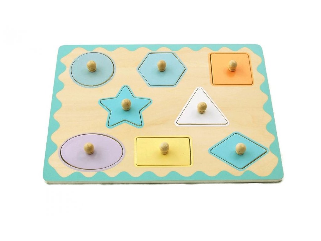 Edukační vkládačka/puzzle s úchyty. Krásné puzzle Adam Toys je ideální hračka k procvičování dovedností a na druhé straně skvělou zábavou k prozkoumávání. Hračky tohoto typu rozvíjejí mnoho dovedností: - díky úchytům dítě cvičí uchopovací schopnosti, - rozvíjí koordinaci rukou a očí tím, že musí dílek vložit ná správné místo, - rozvíjí vnímavost a logické myšlení, když potřebujete kombinovat tvary mezi sebou, -dává příležitost naučit se tvary a barvy, protože každá barva tvaru je spojena s barvou zvířete, rozvíjí zvědavost, protože pod každou kostičkou je skryté jiné lesní zvířátko. Obsahuje základovou desku a osm různých vkládacích tvarů. kolo - mýval, šestiúhelník - medvěd, kvádr - liška, hvězda - ptáček, trojúhelník - králíček, ovál - sova, obdélník - včela, kosočtverec - ježek. Puzzle jsou vyrobené výhradně z přírodního dřeva, lakované prvky jsou pro Vaše dítko bezpečné. Jemné barvy upoutají pozornost. Rozměry:29 x 21,5 cm. Věk: 1+.Doplňkové parametry