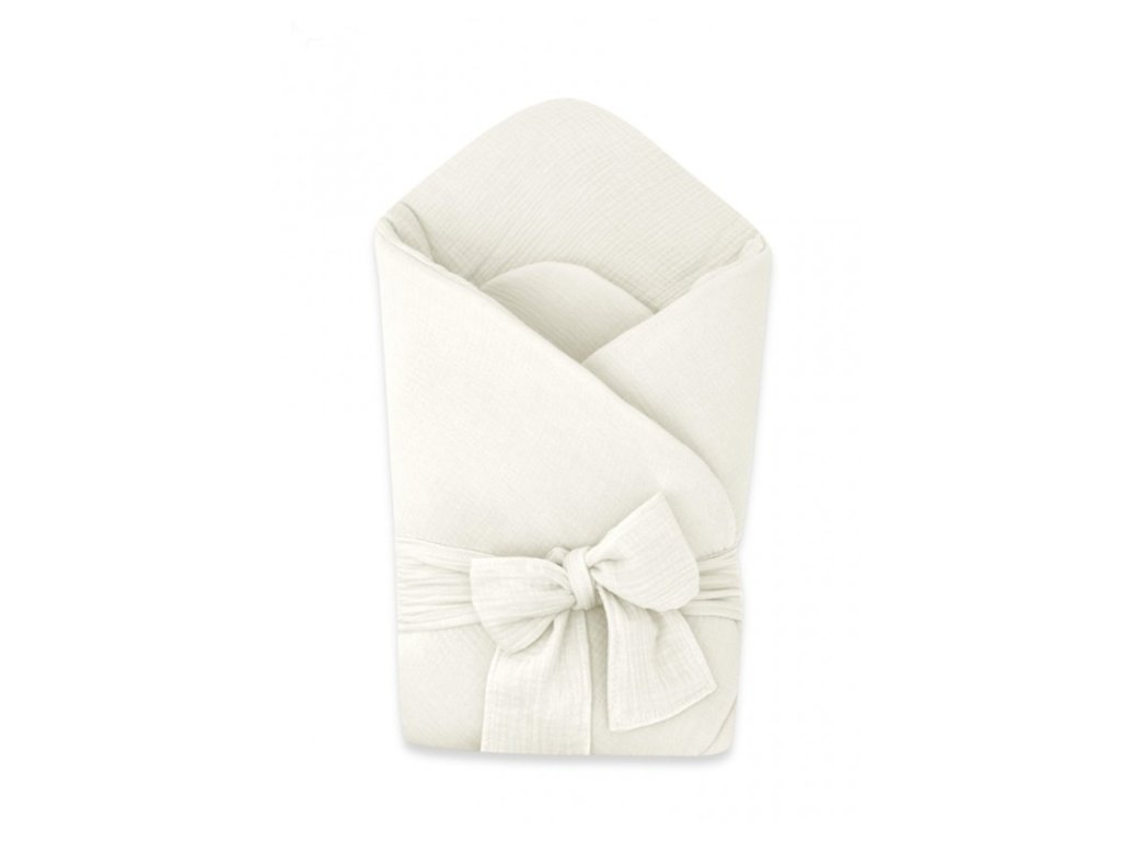 Elegantní mušelínová zavinovačka s vázáním Nature, 75x75 cm, smetanová