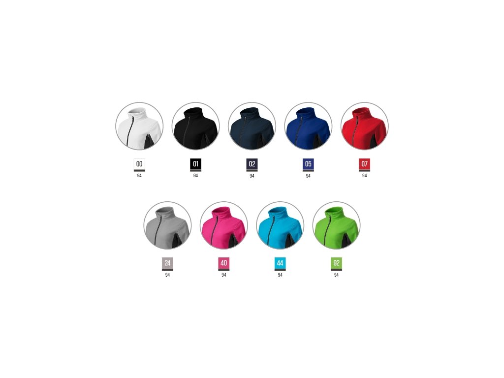 hřejivý materiál lehce vypasovaný střih vnitřní průkrčník začištěn kontrastní páskou celopropínací spirálový zip s krytkou brady kapsy se spirálovým zipem dolní lem na stažení elastickou šňůrkou dekorativní prošití antipilingová úprava z vnější stranyFleece, 100 % polyester, antipilingová úprava