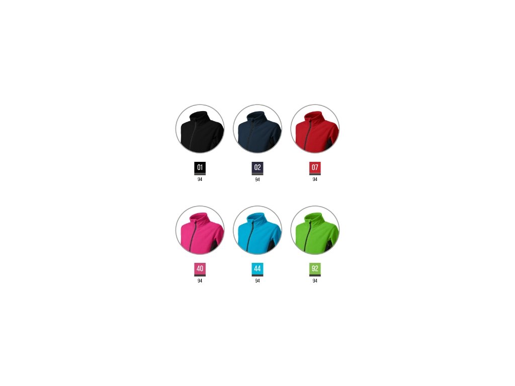hřejivý materiál vnitřní průkrčník začištěn kontrastní páskou celopropínací spirálový zip s krytkou brady kapsy se spirálovým zipem dolní lem na stažení elastickou šňůrkou dekorativní prošití antipilingová úprava z vnější stranyFleece, 100 % polyester, antipilingová úprava