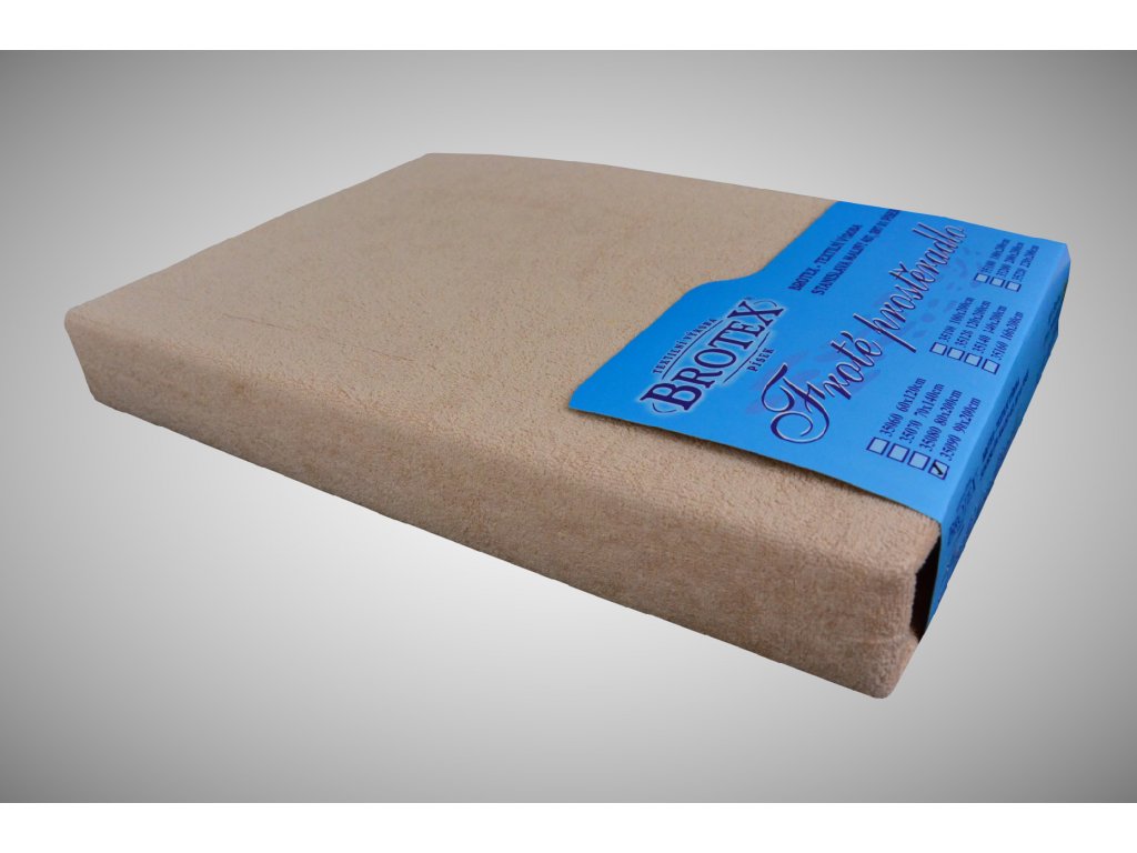 Napínací froté prostěradlo na vysokou matraci ve světle béžové barvě je vyrobeno z kvalitní froté pleteniny o plošné hmotnosti 180g/m2. Pletenina je vyrobena z na omak velmi příjemných a jemných česaných přízí, díky nimž prostěradlo neškrábe a je příjemné na omak.