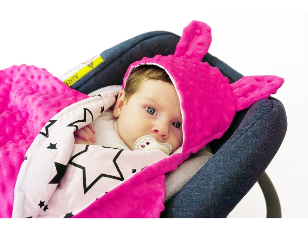 Fusak, spacáček do autosedačky nebo kočárku s oušky, minky - sytě růžová