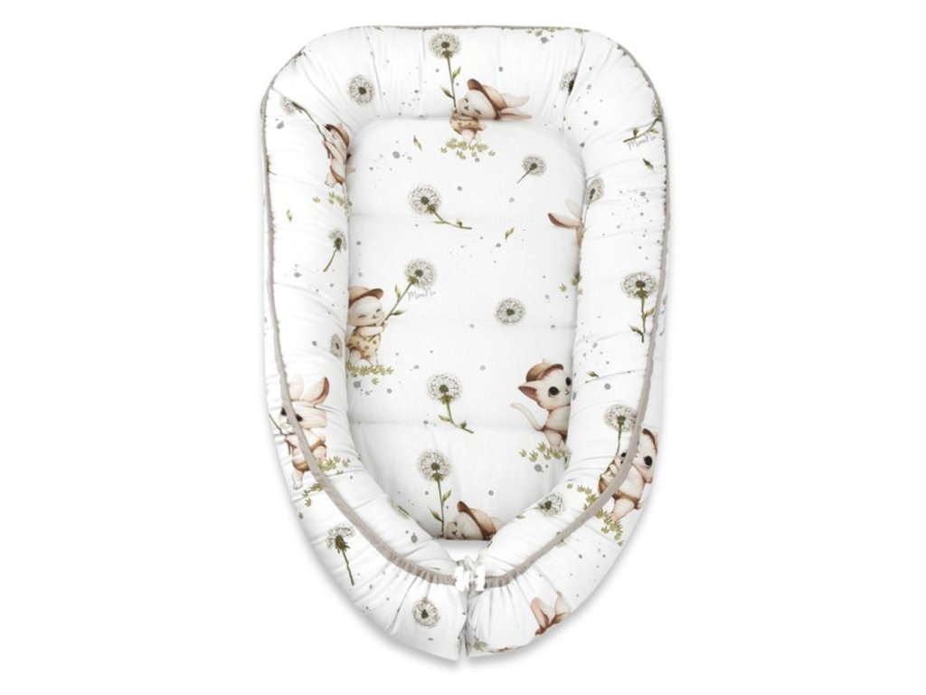 Hnízdečko, kokon pro miminko, bavlna, Kocourek a pampeliška - bílá