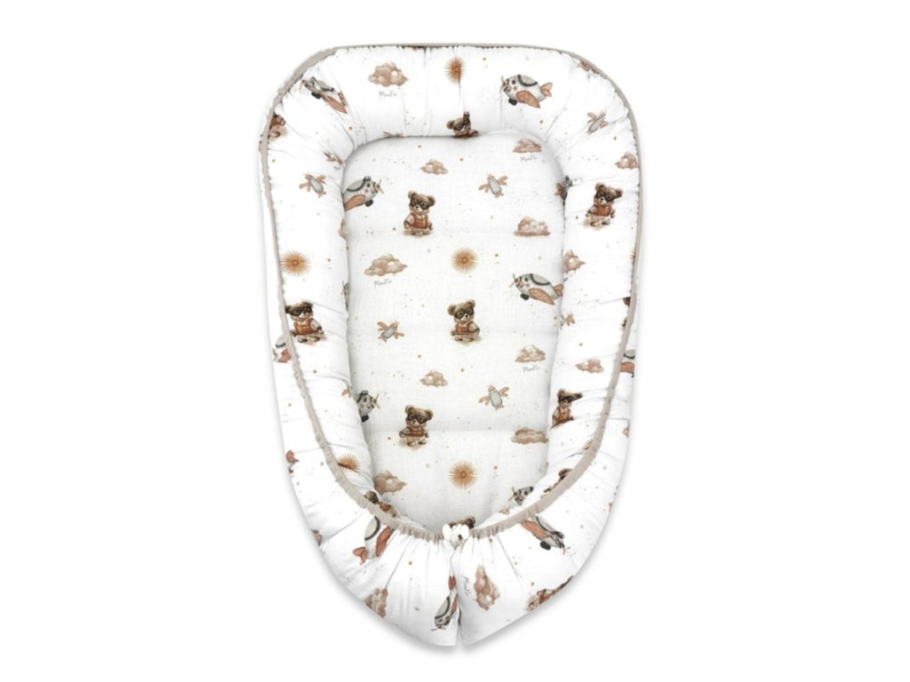 Hnízdečko, kokon pro miminko, bavlna, Méďa pilot - bílá, béžová