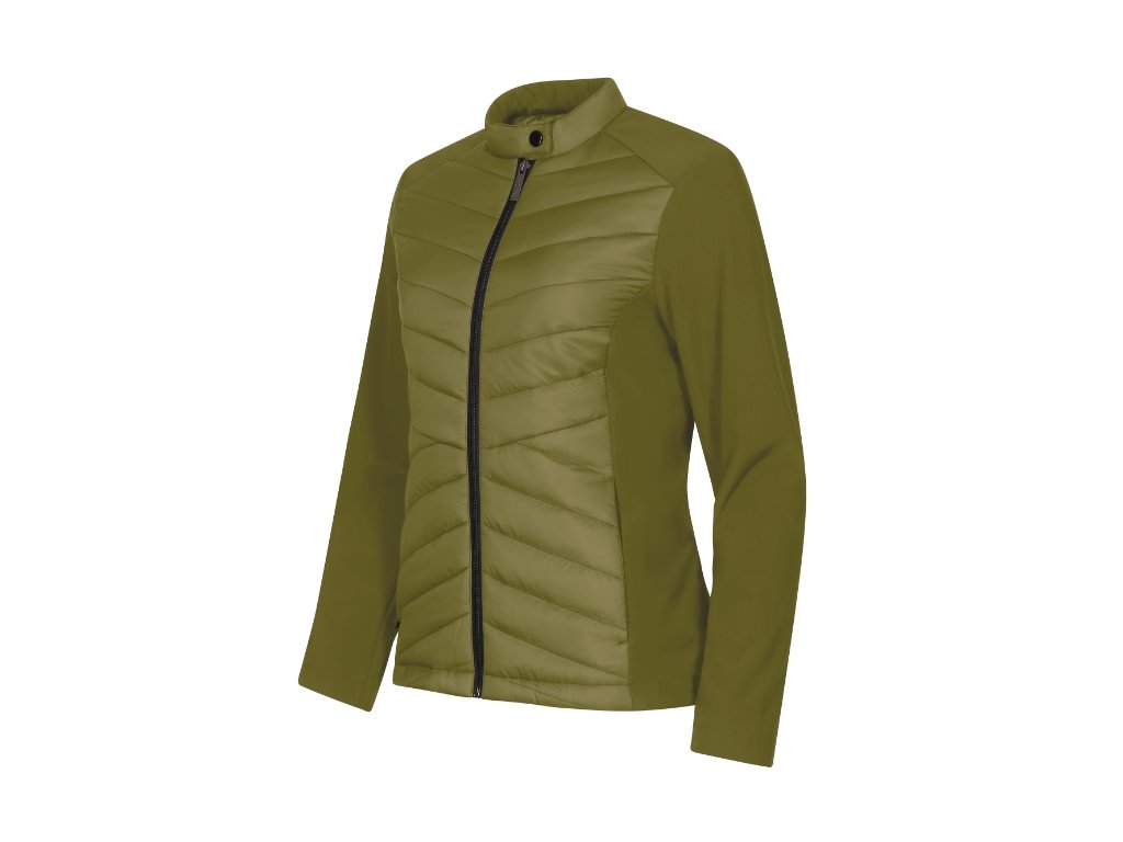 kombinace prošívaného a softshellového materiálu střih tvarovaný bočními díly stojáček na druk celopropínací spirálový zip boční kapsy se spirálovým zipem vnitřní náprsní kapsa na zip vstup pro branding v podšívce zadního díluPlátnová vazba: 100 % polyamid, vodoodpudivá úprava výplň: 100 % polyester Softshell: 90 % polyester, 10 % elastan, vodoodpudivá úprava, 250 g/m² Podšívka: 100 % polyester
