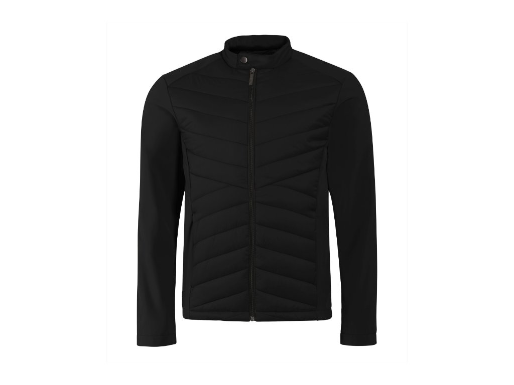 kombinace prošívaného a softshellového materiálu rovný střih s bočními díly stojáček na druk celopropínací spirálový zip boční kapsy se spirálovým zipem vnitřní náprsní kapsa na zip vstup pro branding v podšívce zadního díluPlátnová vazba: 100 % polyamid, vodoodpudivá úprava Výplň: 100 % polyester Softshell: 90 % polyester, 10 % elastan, vodoodpudivá úprava, 250 g/m² Podšívka: 100 % polyester