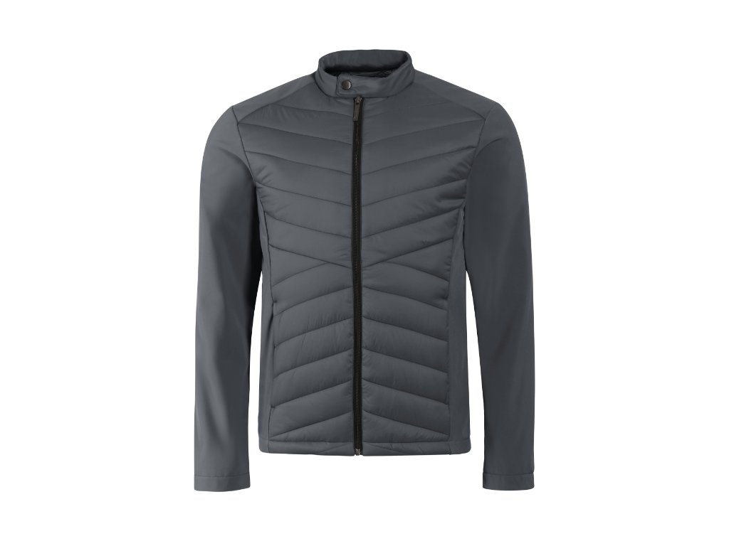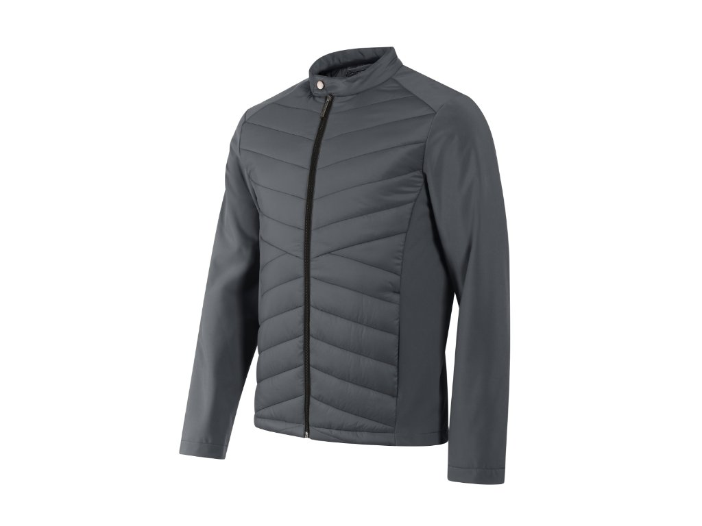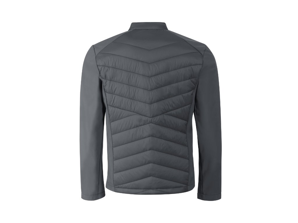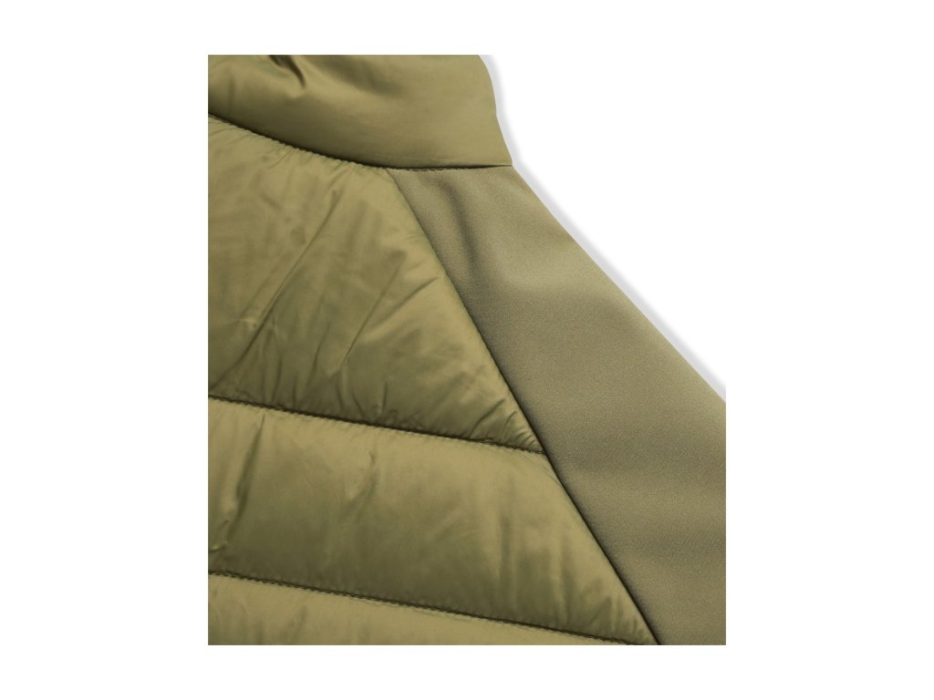 kombinace prošívaného a softshellového materiálu rovný střih s bočními díly stojáček na druk celopropínací spirálový zip boční kapsy se spirálovým zipem vnitřní náprsní kapsa na zip vstup pro branding v podšívce zadního díluPlátnová vazba: 100 % polyamid, vodoodpudivá úprava Výplň: 100 % polyester Softshell: 90 % polyester, 10 % elastan, vodoodpudivá úprava, 250 g/m² Podšívka: 100 % polyester