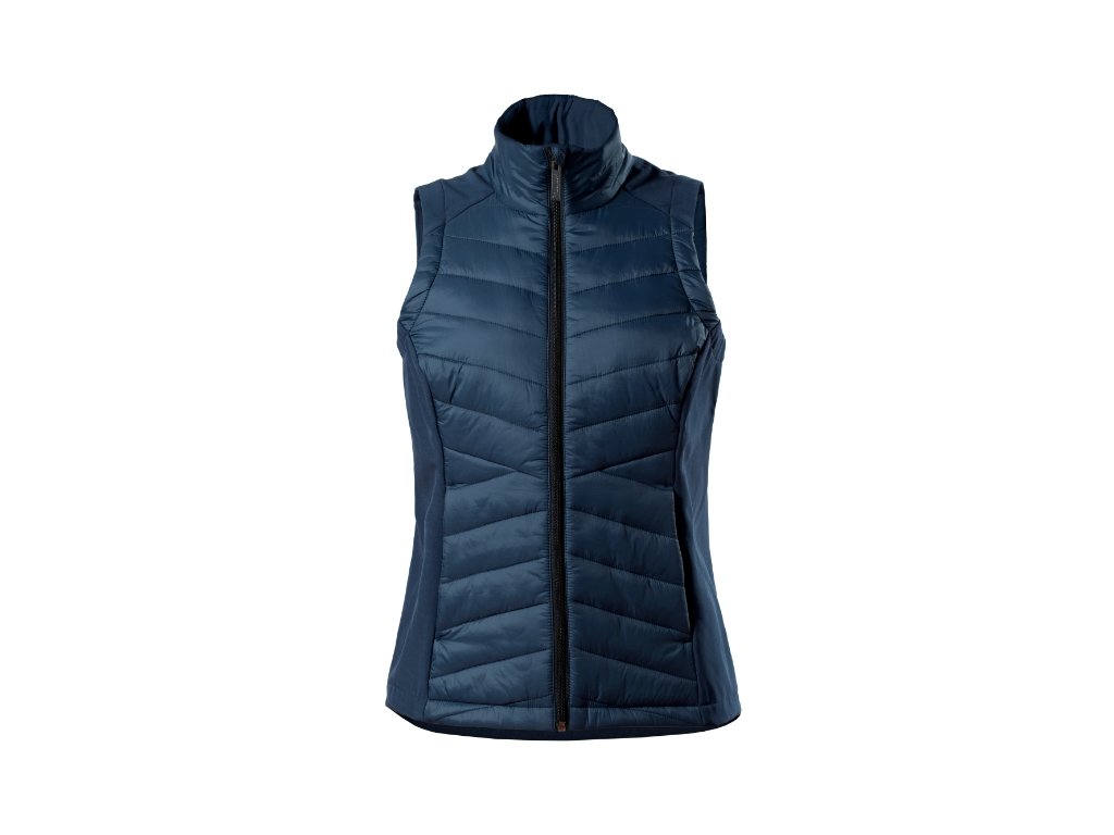kombinace prošívaného a softshellového materiálu střih tvarovaný bočními díly celopropínací spirálový zip s krytkou brady boční kapsy se spirálovým zipem vnitřní náprsní kapsa na zip tvarovaný a mírně prodloužený zadní díl vstup pro branding v podšívce zadního díluPlátnová vazba: 100 % polyamid, vodoodpudivá úprava výplň: 100 % polyester Softshell: 90 % polyester, 10 % elastan, vodoodpudivá úprava, 250 g/m² Fleece: 100 % polyester, antipilingová úprava