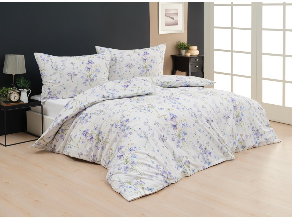 Zvonky, fialky, chrpy sedmikrásky a spousta dalších lučních květin zdobí bavlněné ložní povlečení Isabelle. Kvítky v převažujících modrofialových tónech se prolínají na krémově bílém podkladu a nechybí samozřejmě ani drobní motýlci. Nechte svou ložnici rozkvést! Díky nejmodernějšímu digitálnímu tisku vyniká vzor v precizním detailu.Povlak na polštář i na přikrývku je z obou stran stejný, povlečení je opatřeno komfortním zipovým uzávěrem.