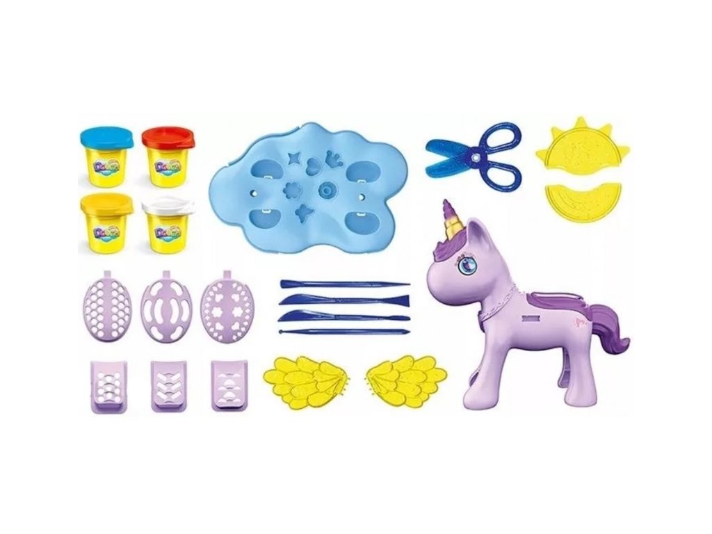 Jednorožec s plastickou hmotou.Perfektní hračka pro vaše dítě! Skvělá zábava a vzrušující hra poskytne mnoho hodin skvělého humoru. Podpoří rozvoj fantazie vašeho dítěte a poskytne spoustu zábavy s platsickou hmotou příjemnou na dotek.
