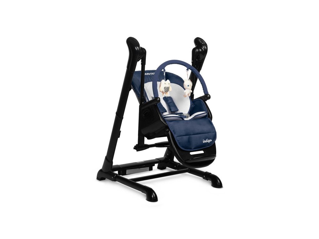 Indigo – jídelní židlička a houpačka 2v1 pro vaše miminko. Indigo je elegantní a funkční řešení 2v1 – slouží jako jídelní židlička i dětská houpačka. Designově propracovaný doplněk každého interiéru, který nabízí maximální pohodlí a bezpečnost při jídle i odpočinku. Hlavní výhody produktu Indigo: 2v1: jídelní židlička a dětská houpačka. Houpačka vhodná pro děti od narození do 9 kg. Jídelní židlička pro děti od 6 měsíců do cca 3–4 let (do 15 kg). Snadno omyvatelný potah z PVC, odolný vůči skvrnám. 4 polohy zádové opěrky – komfort při jídle i relaxaci. 6 výškových poloh židličky a 5 poloh podnožky. Měkká bavlněná vložka pro menší děti. Jednoduché skládání a úspora místa. Stabilní konstrukce a protiskluzové nožky. Velká, dvojitá odnímatelná jídelní tác. Centrální ovládací panel – buzení na baterie nebo adaptér. Nastavitelná rychlost houpání a časovač (8, 15, 30 min). Odnímatelný oblouk s plyšovými hračkami. Splňuje normy EN 14988, EN 16232, EN 71. Indigo je ideální volbou pro moderní rodiny hledající styl, praktičnost a bezpečí v jednom produktu.Doplňkové parametry