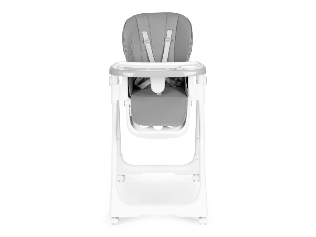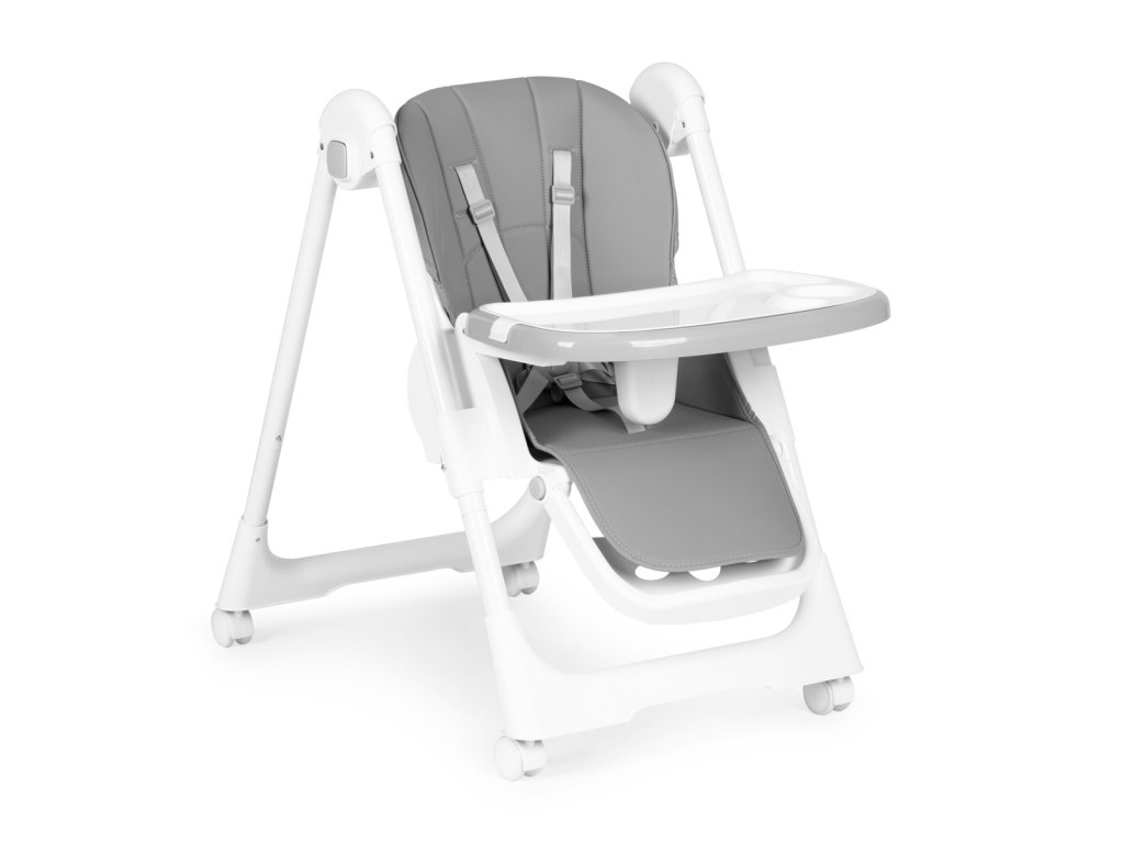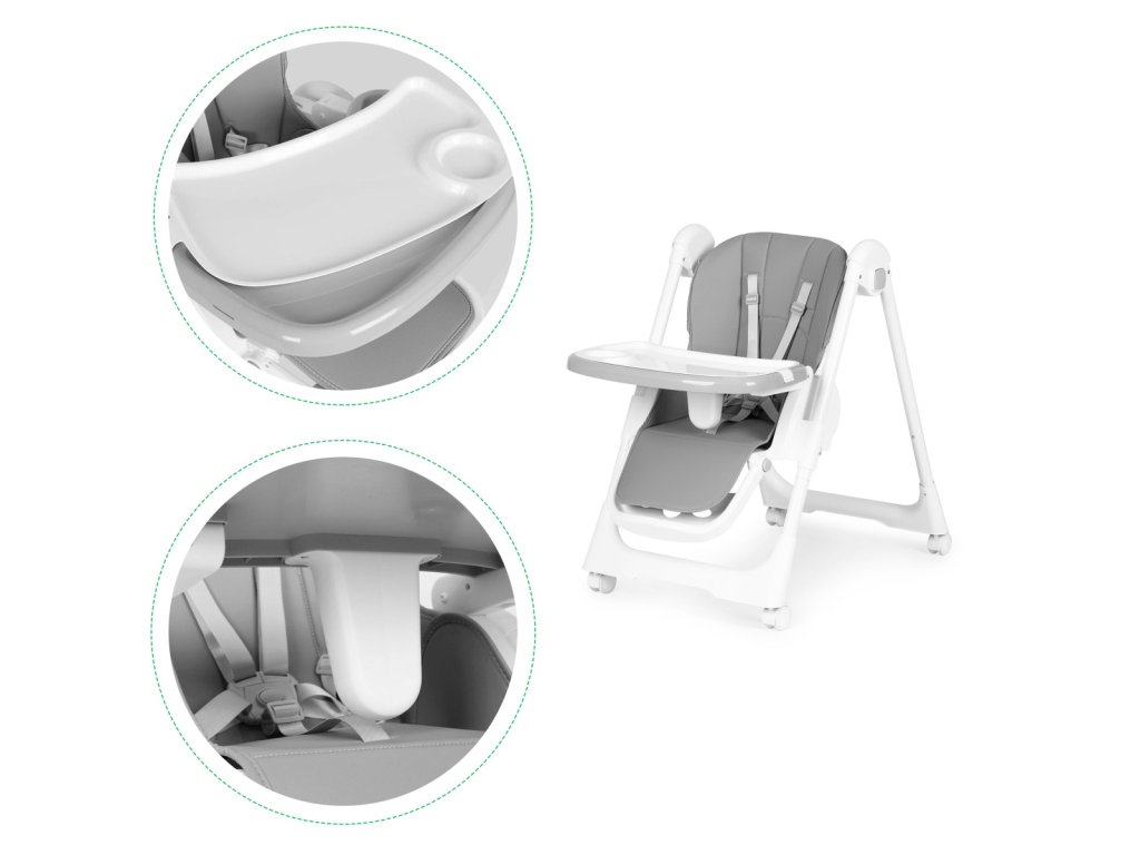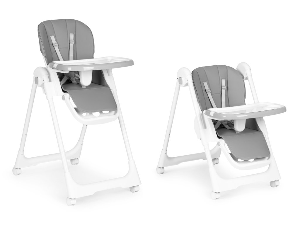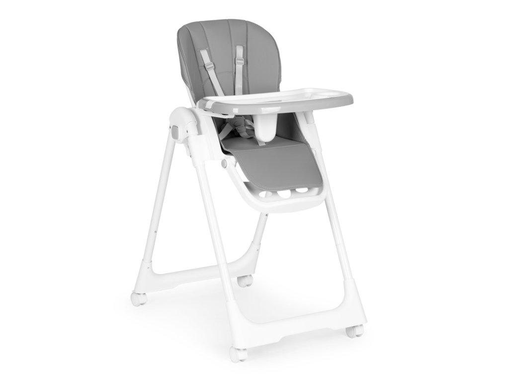 Jídelní židlička s nastavitelnou výškou, ekokůže, táckem, šedá