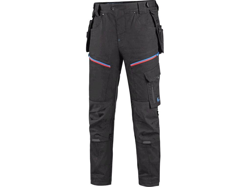 Pánské pracovní kalhoty moderního střihu slim-fit. Kombinace kvalitního směsového materiálu s elastanem a 4-way stretch materiálu v exponovaných místech umožňuje volný a pohodlný pohyb. Vybavení kalhot: flexibilní pas s možností upravení velikosti a poutky na opasek, na vnitřní straně pasu protiskluzový potisk, 2 přední kapsy, 2 odnímatelné kapsy na nářadí vyztuženy materiálem CORDURA®, stehenní zipové kapsy s možností ventilace, boční kapsa se zipovou kapsou, 2 zadní kapsy (jedna zipová) vyztuženy materiálem CORDURA®, kapsa na skládací metr s dalšími přihrádkami, ergonomicky tvarovaná kolena zesílena materiálem CORDURA® s možností vložení kolenních výztuh bočním vkládáním a ventilací, kapsa na ID kartu, spodní část nohavic vyztužena materiálem CORDURA®, reflexní doplňky. Kalhoty jsou vybaveny EASY-PROLONG systémem, který umožňuje snadné prodloužení střihu na vyšší postavu uvolněním švu na nohavicích. Doporučené použití: strojírenství, stavebnictví, lehký průmysl, automobilový průmysl, logistika, skladování, spedice, autoservisy, údržba, montáže, zemědělství, zahrada, hobby a volný čas.