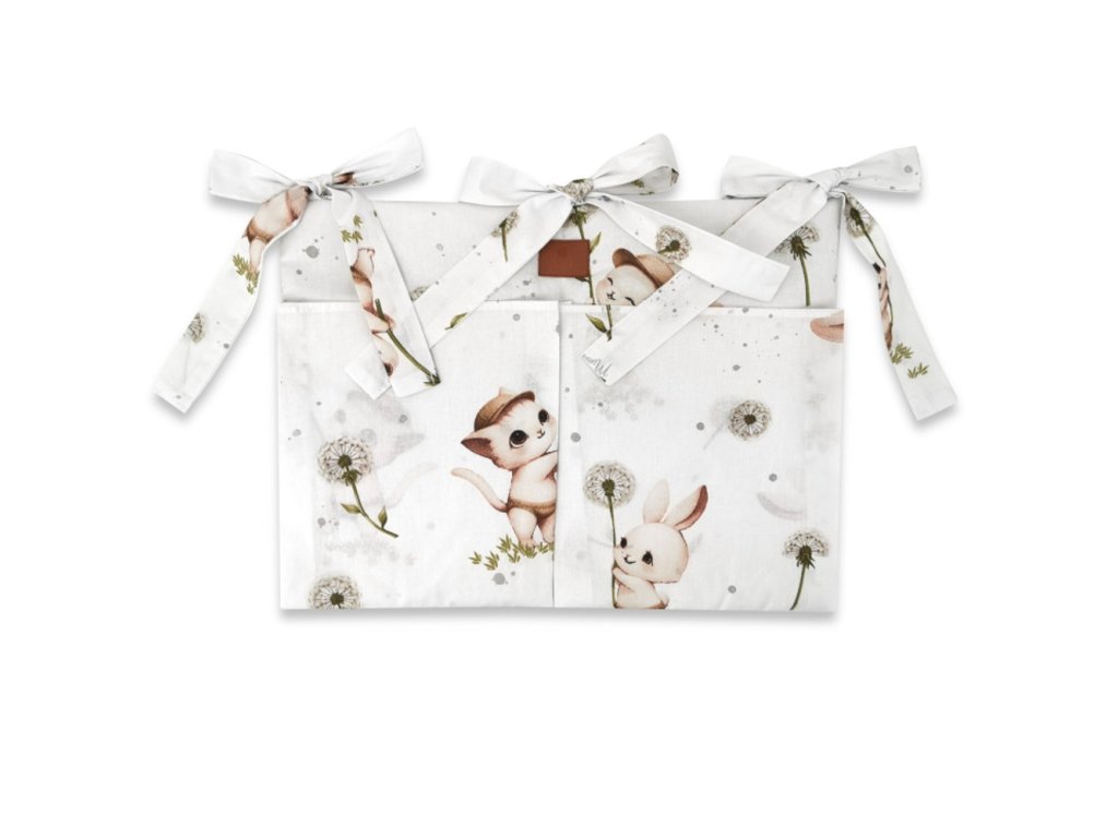 Kapsář na postýlku, bavlna, Kocourek a pampeliška - bílý