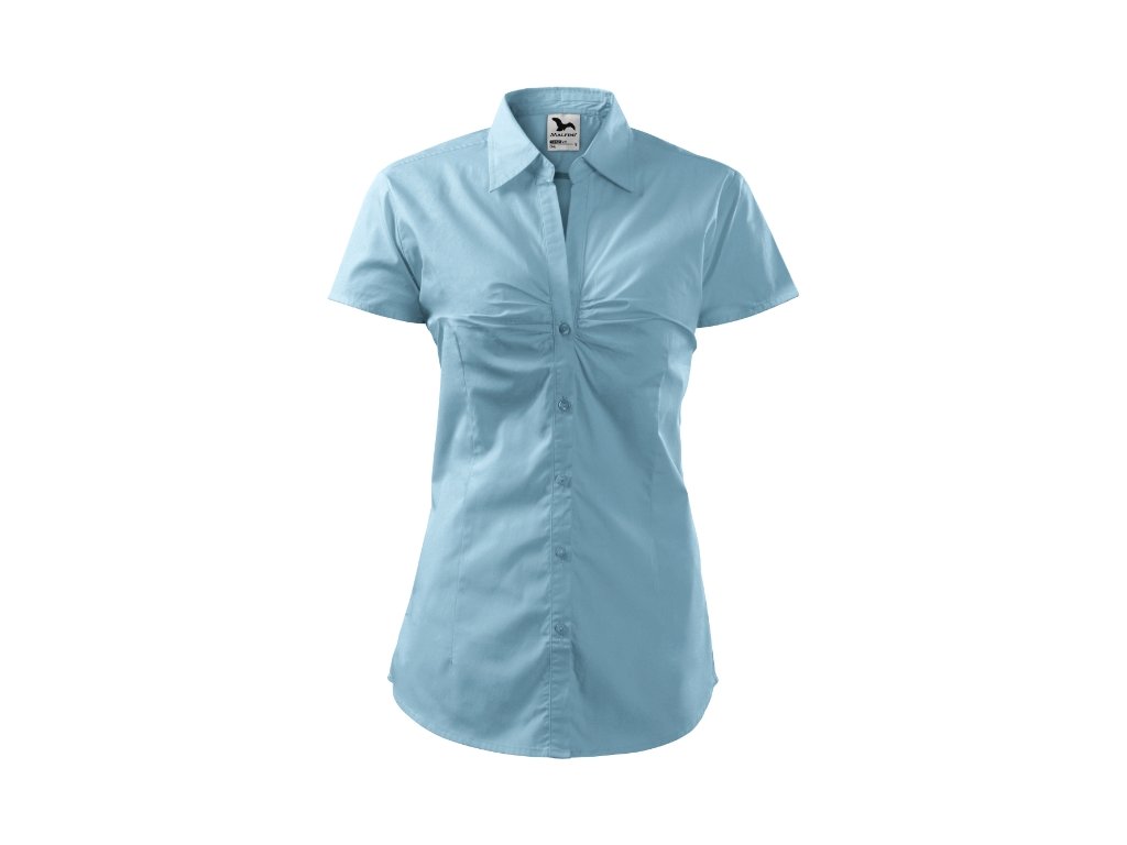 jednoduché sedlo a záševky na zadním dílu pasové záševky oblast hrudníku zdobena řasením dvoudílný košilový límec s rozhalenkou přední kraje začištěny légou knoflíčky v barvě materiálu (1 náhradní navíc) tvarovaný dolní krajPopelín, 100 % bavlna