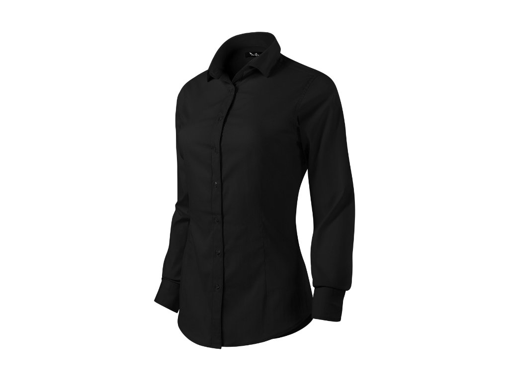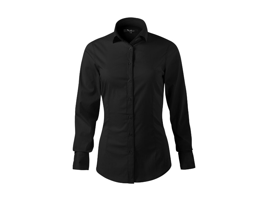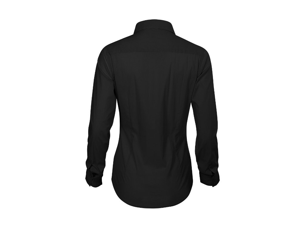 jemný strečový materiál projmutý střih s bočními švy dvojité sedlo na zadním dílu pasové a prsní záševky dvoudílný košilový límec přední kraje začištěny légou dlouhé rukávy s šikmou manžetou na 2 knoflíčky perleťové knoflíčky v barvě materiálu (1 náhradní navíc) tvarovaný dolní krajPlátnová vazba, 68 % bavlna, 29 % polyamid, 3 % elastan