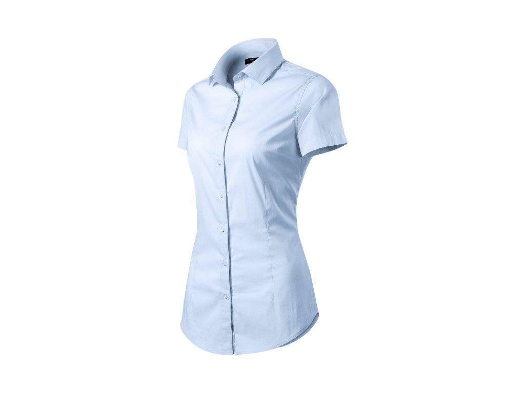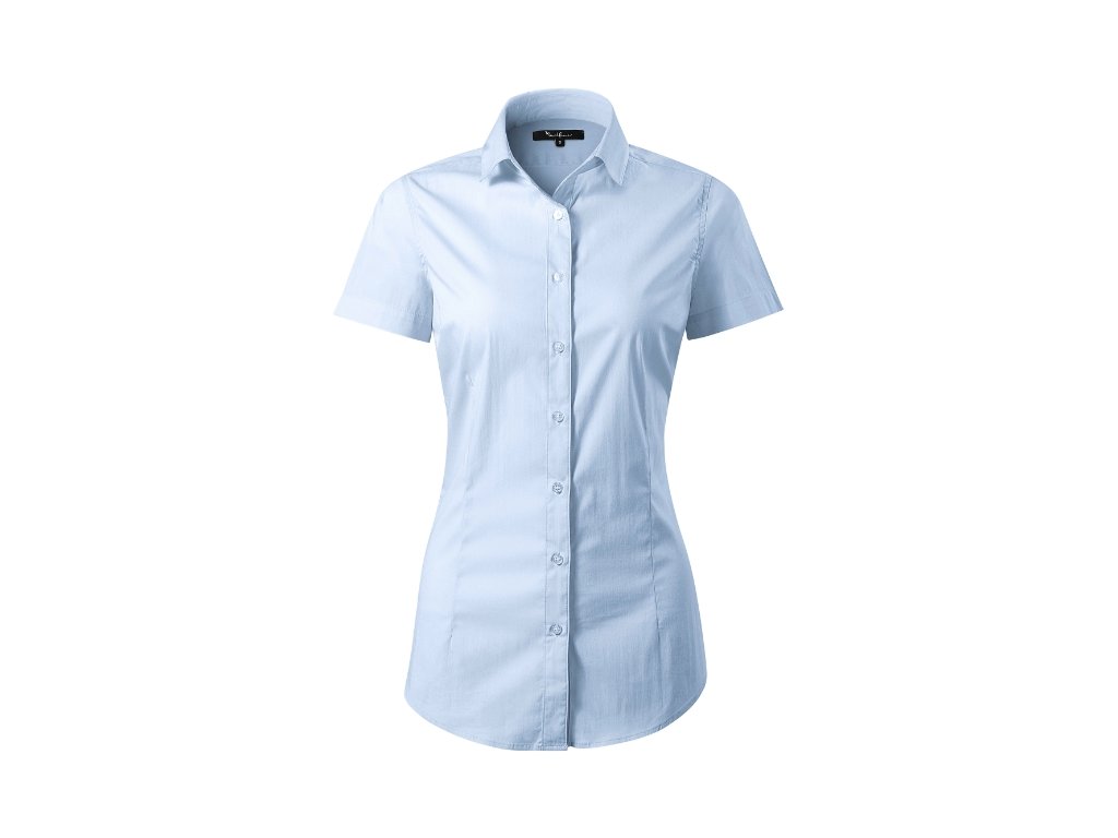 jemný strečový materiál projmutý střih s bočními švy dvojité sedlo na zadním dílu pasové a prsní záševky dvoudílný košilový límec přední kraje začištěny légou perleťové knoflíčky v barvě materiálu (1 náhradní navíc) tvarovaný dolní krajPlátnová vazba, 68 % bavlna, 29 % polyamid, 3 % elastan