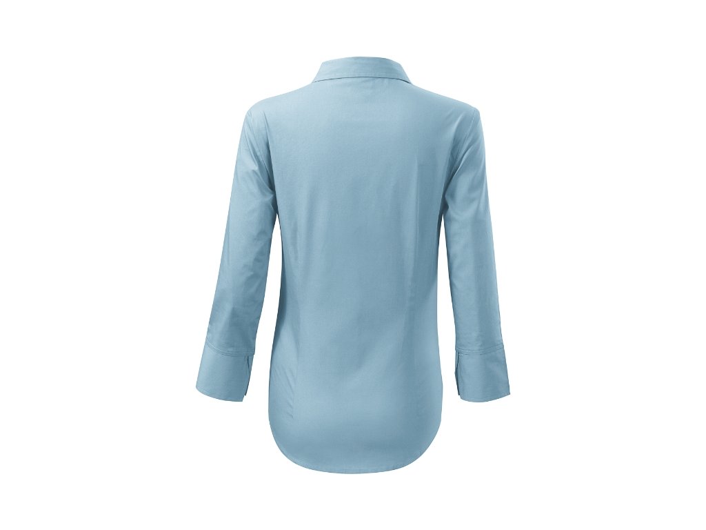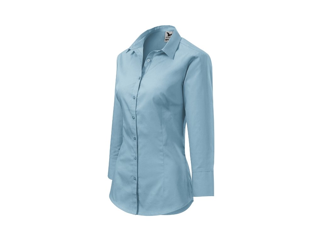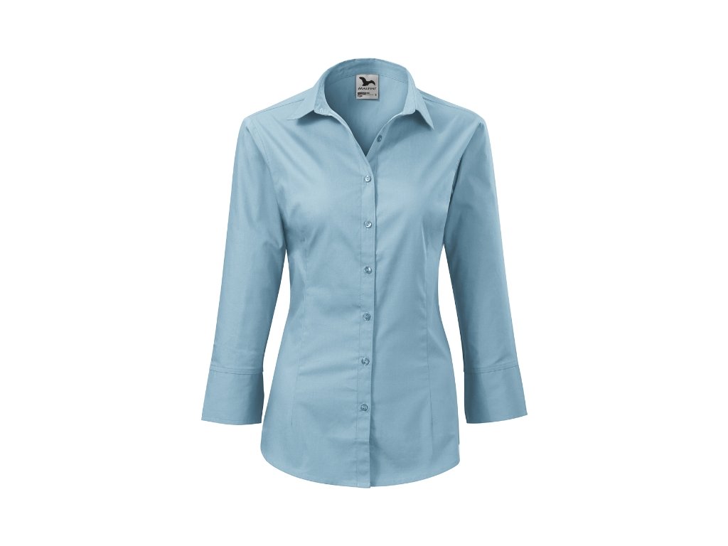 projmutý střih s bočními švy záševky na zadním dílu pasové a prsní záševky dvoudílný košilový límec přední kraje začištěny légou 3/4 rukávy s rovnou vysokou manžetou a rozparkem knoflíčky v barvě materiálu (1 náhradní navíc) tvarovaný dolní krajPopelín, 100 % bavlna