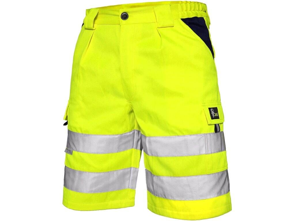 Pánské výstražné kraťasy, pas s poutky na opasek a gumou v bocích, 2 přední kapsy, 2 zadní kapsy s klopou na suchý zip, 2 boční kapsy s klopou na suchý zip, levá boční kapsa rozdělena na dvě komory, 3M reflexní pásky (šíře 5 cm a 6 cm). Doporučené použití: letní pracovní oděv, stavebnictví, silničáři, řidiči, údržba, logistika, letecká a lodní doprava, popeláři, záchranáři.