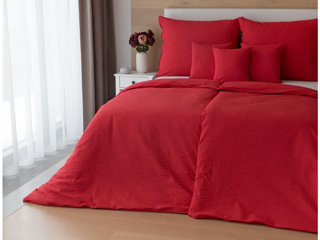 Luxusní červené krepové povlečení v provedení kvalitní 100% bavlny je opatřeno komfortním zipovým uzávěrem. Povlečení se snadno udržuje - nežehlí se.Užijte si úžasnou variabilitu povlečení Matějovský a probouzejte se každé ráno odpočatí a s dobrou náladou.