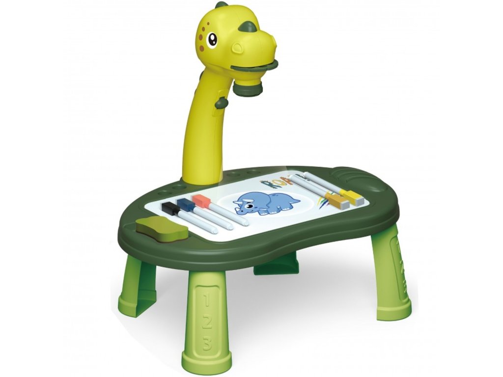 Kreslicí stoleček s projektorem + fixy, Dinosaurus, zelený