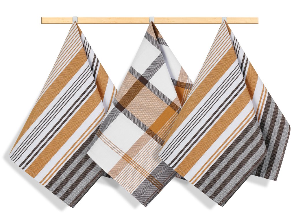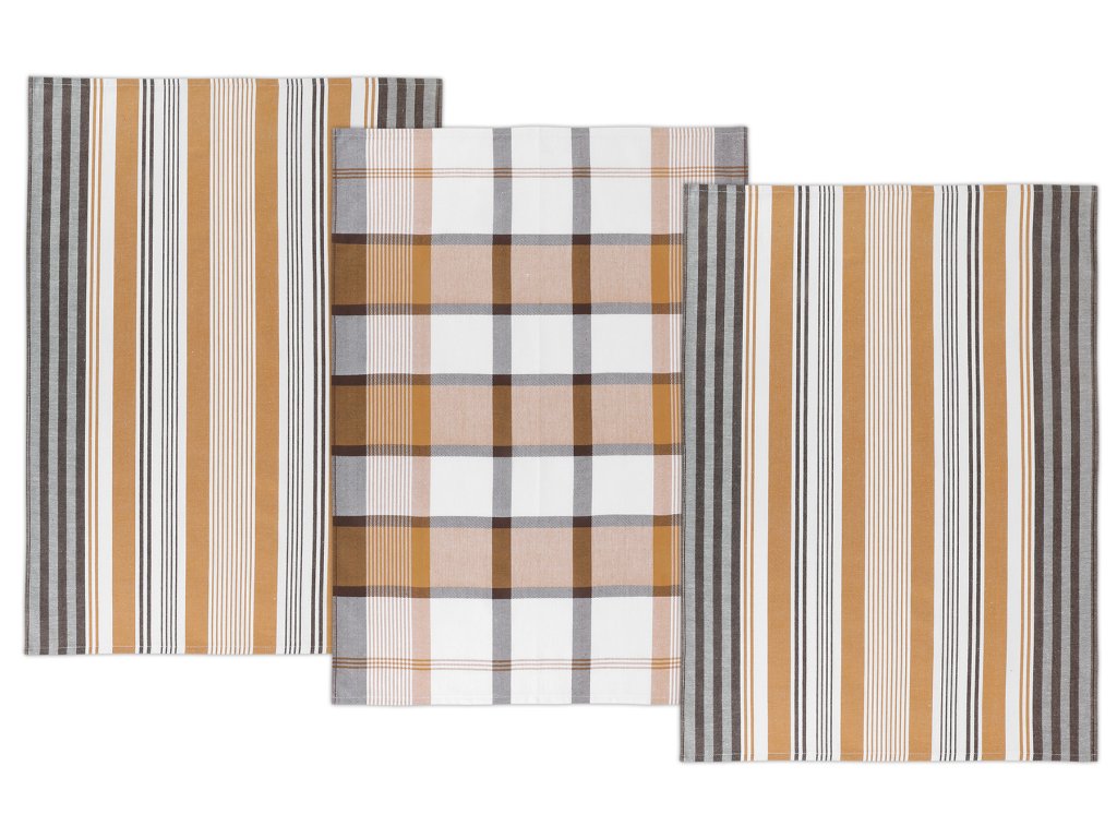 Kuchyňská utěrka 50x70cm proužek hořčicový, hnědý